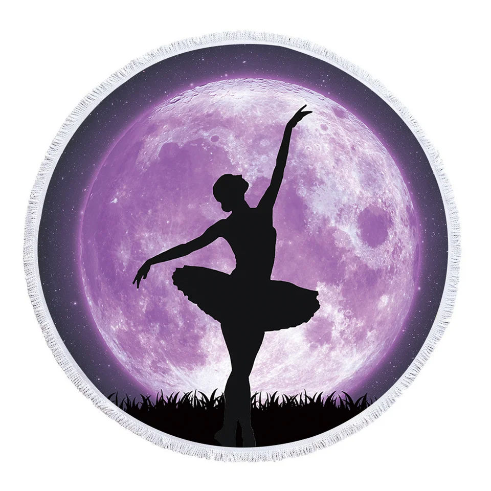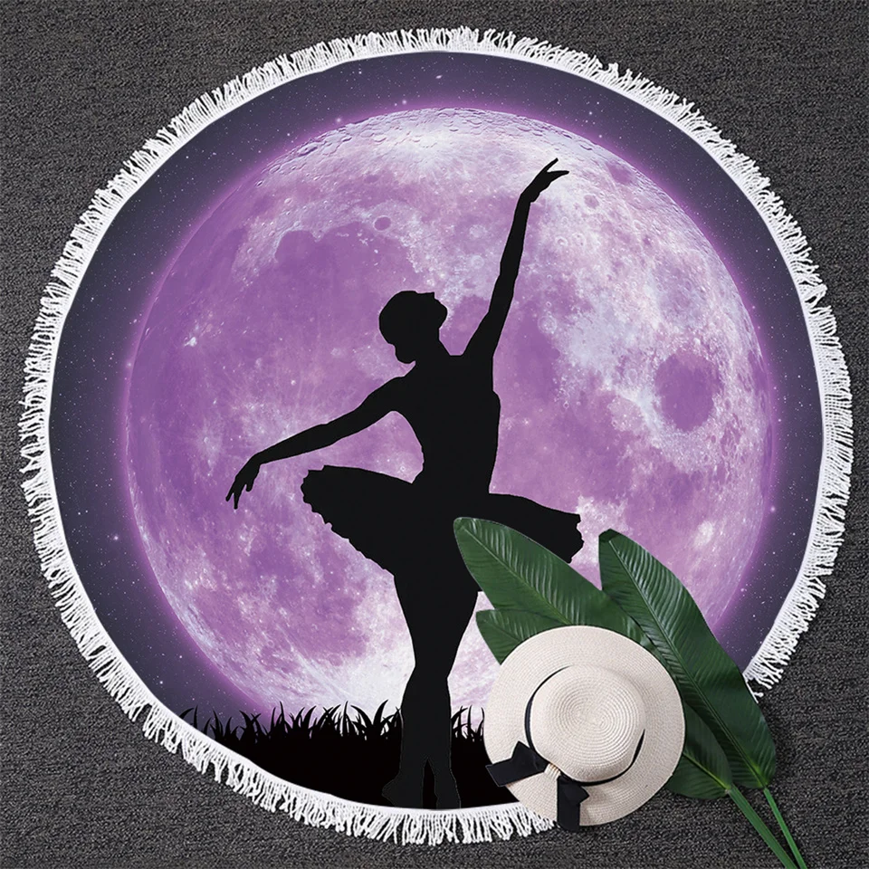 Круглое пляжное полотенце BlessLiving, гигантский фиолетовый гобелен с Луной, танцующая девушка, коврик для йоги, Галактическое ночное небо, яркое одеяло 150