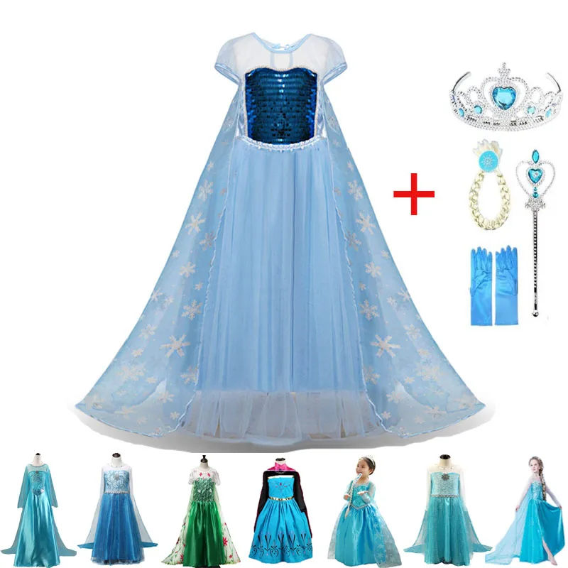 Платье Эльзы, платье принцессы для девочек, костюм Снежной королевы...