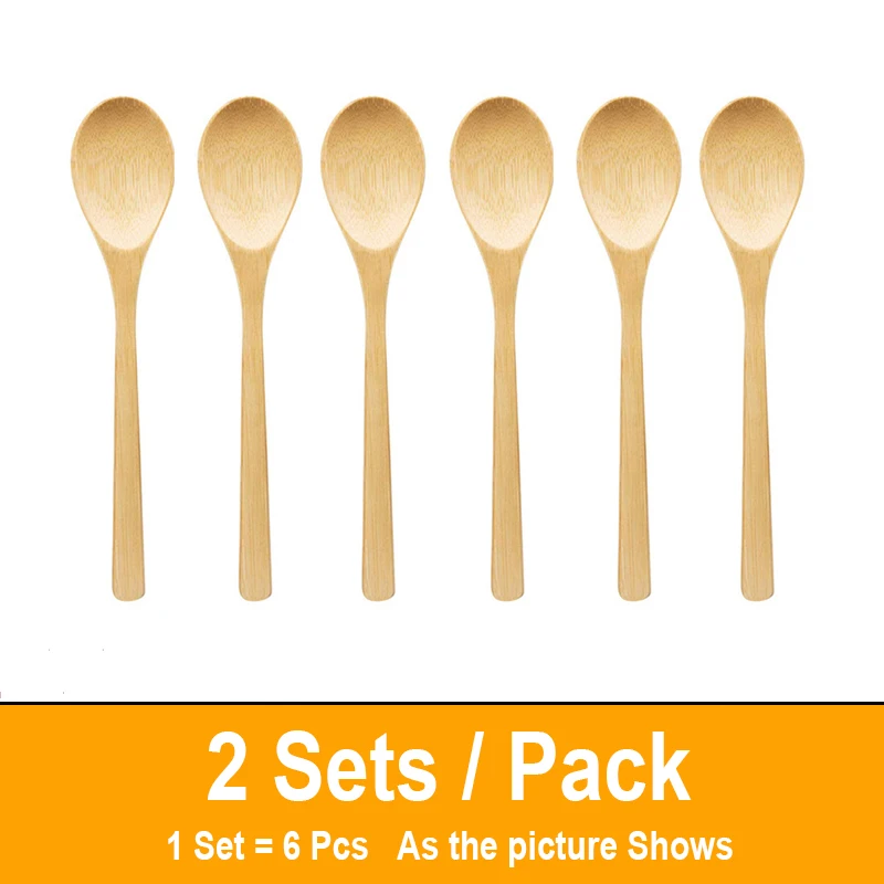 Набор многоразовых ложек из натурального бамбука, 6121824 шт.комплект, экологически чистые столовые приборы 4 см для десертов, кофе, перемешивания мороженого, сервировочная ложка