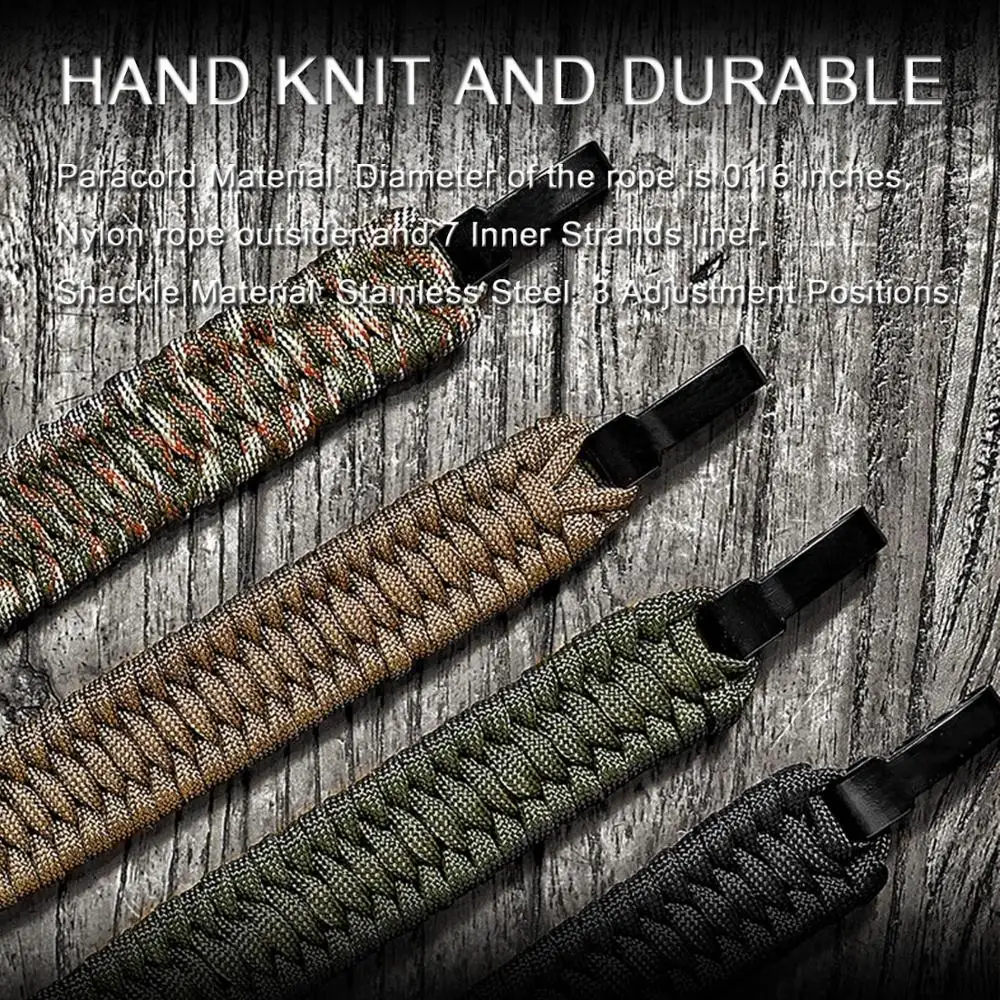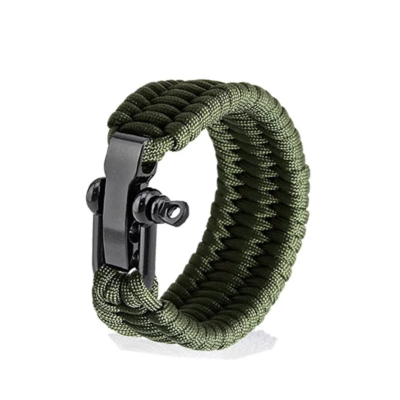Вес изделия: 1,0 унции/30 г Материал Паракорда: диаметр каната-0,16 дюйма; Нейлоновая веревка аутсайдера и 7 внутренних нитей вкладыша; Коррозионная стойкость, Антивозрастная Материал скобы: нержавеющая сталь, 3 положения регулировки Размер: подходит для запястий 8-9 дюймов Максимальное растяжение одного каната: 300 фунтов (научное обнаружение)