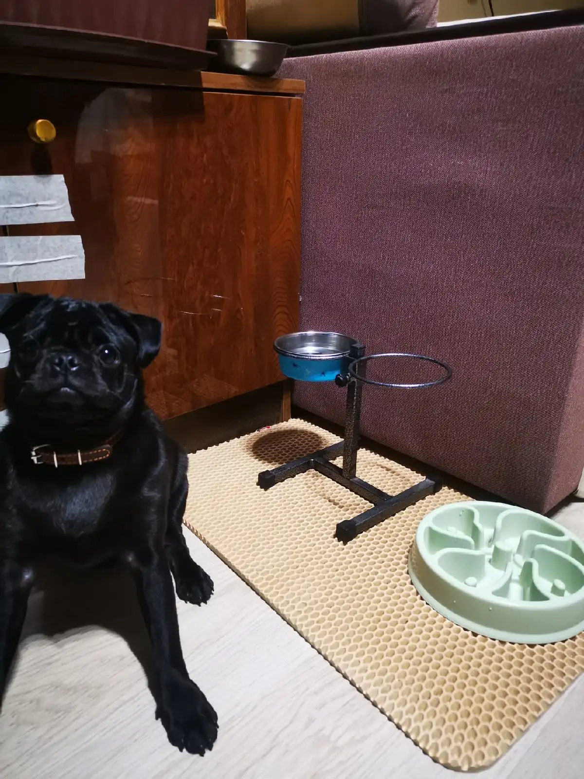 Миску ждала очень долго, где-то 2,5 месяца. Она классная, но очень большая для французского бульдога. Ну и не очень крепкая — упала с высоты стола и треснула