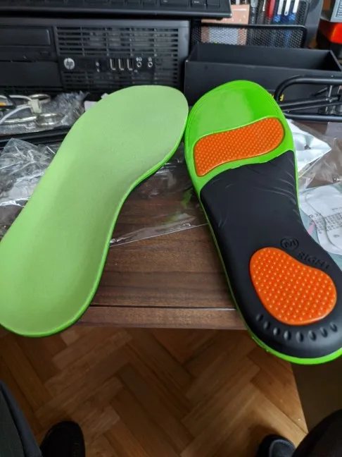 Очень толстая стелька и точный размер. Для ЕС 43-44, необходимо отрезать 2 размера. Хорошо поддерживает дугу стопы, но не комфортно. Действительно мягкие ощущения! И действительно быстрая доставка во Францию.