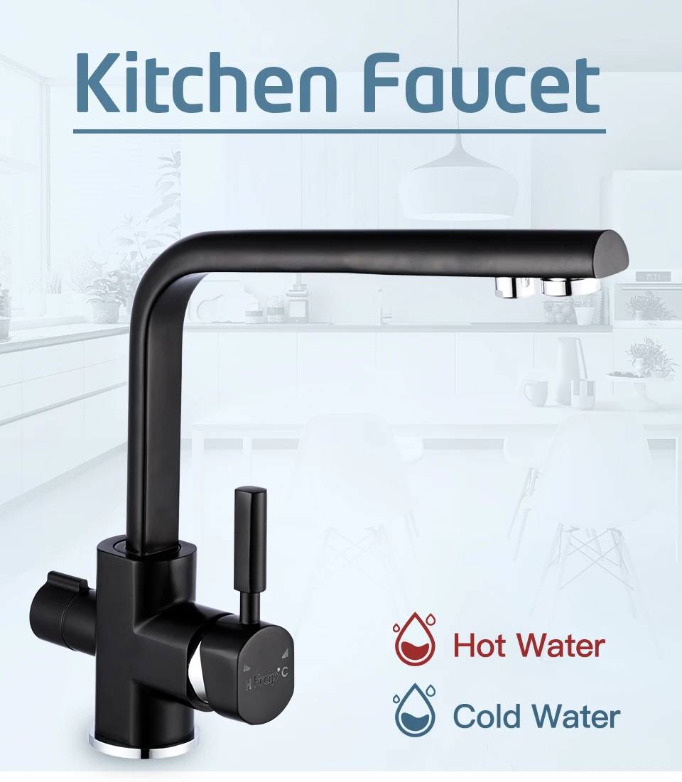 Смеситель кухонный Поворотный на 360 градусов с креплением на раковину и очисткой воды