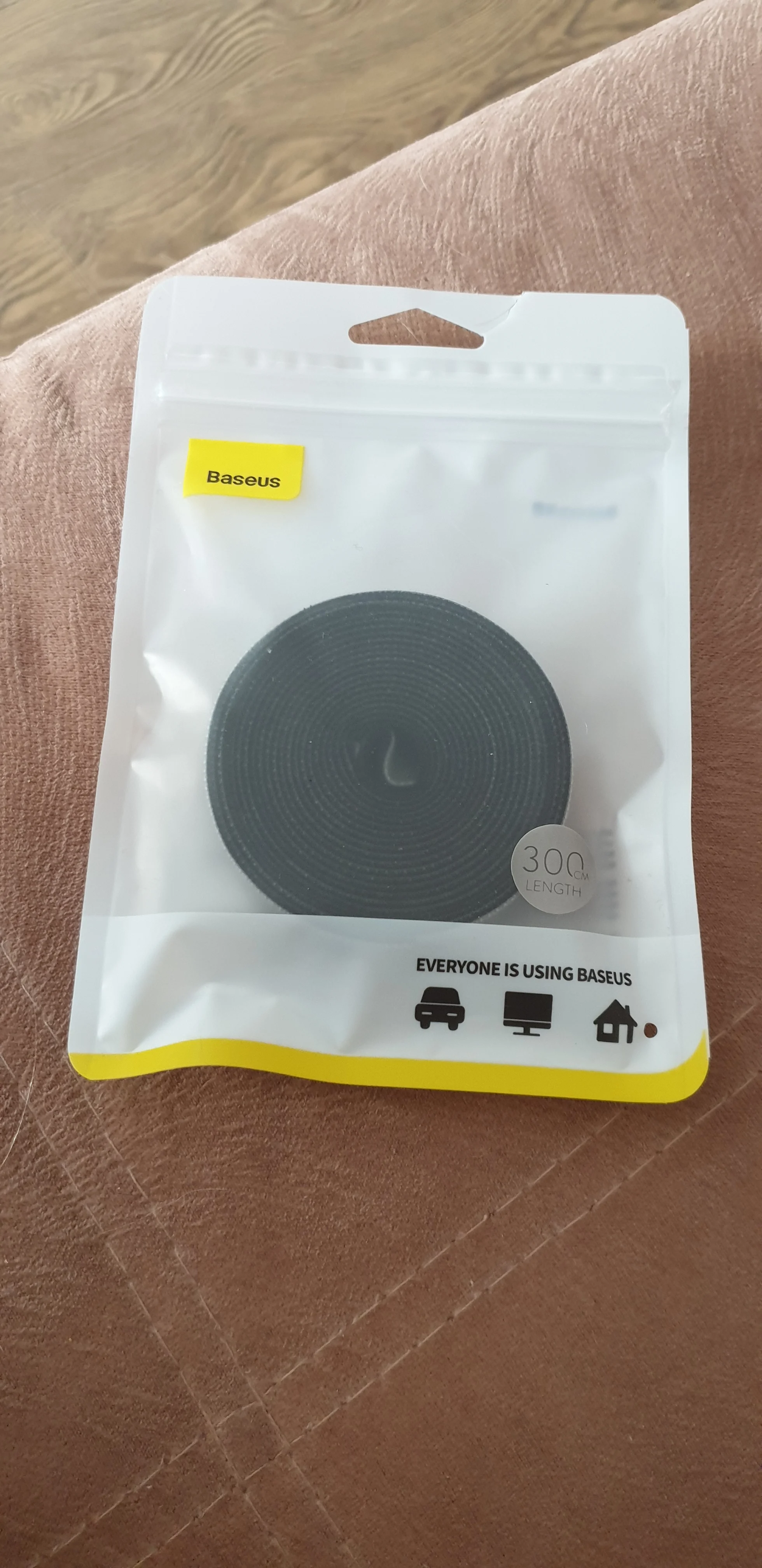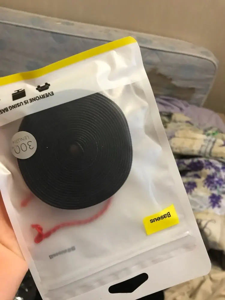 Обычный органайзер для проводов, у другого продавца за ту-же цену лента длиной один метр, а тут половина. В целом притензий нет обычная липучка как на кроссовках.