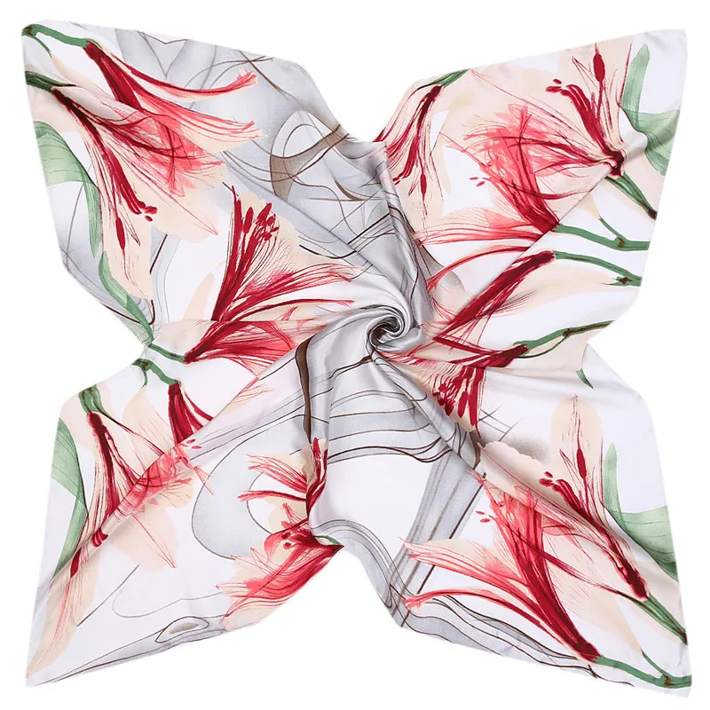 2021 новый модный брендовый квадратный шарф для дам с принтом лилии, шелковый шарф для женщин, бандана, большой хиджаб, женский платок, шарфы