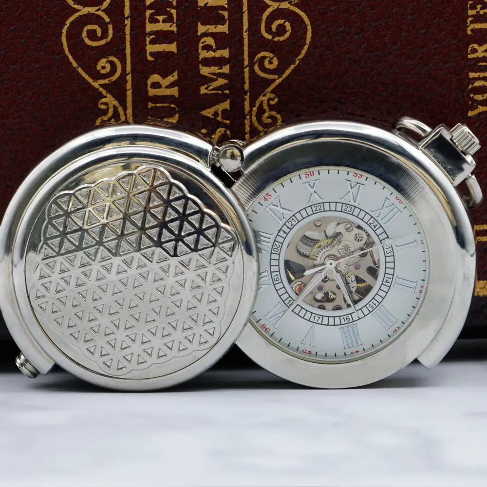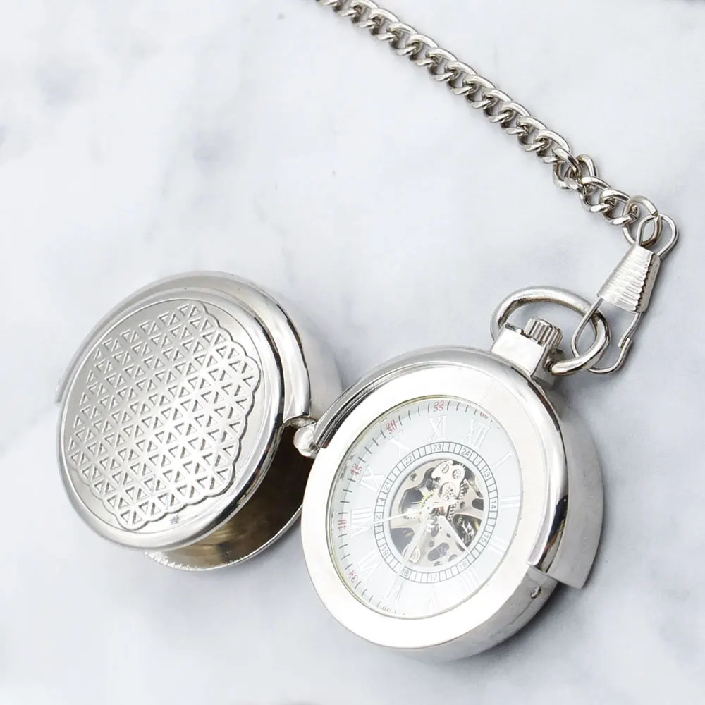 Новые уникальные винтажные Серебристые Механические карманные часы-скелетоны лучший подарок для мужчин и женщин мужские часы с цепочкой-брелком PJX053
