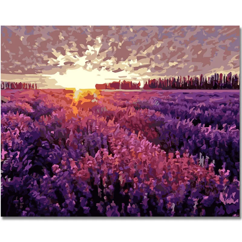 Лавандовые поля закат рамка для картин по последней распродаже Diy картина по номерам Canavas пейзаж раскраска бледно-лиловый домашний декор стен