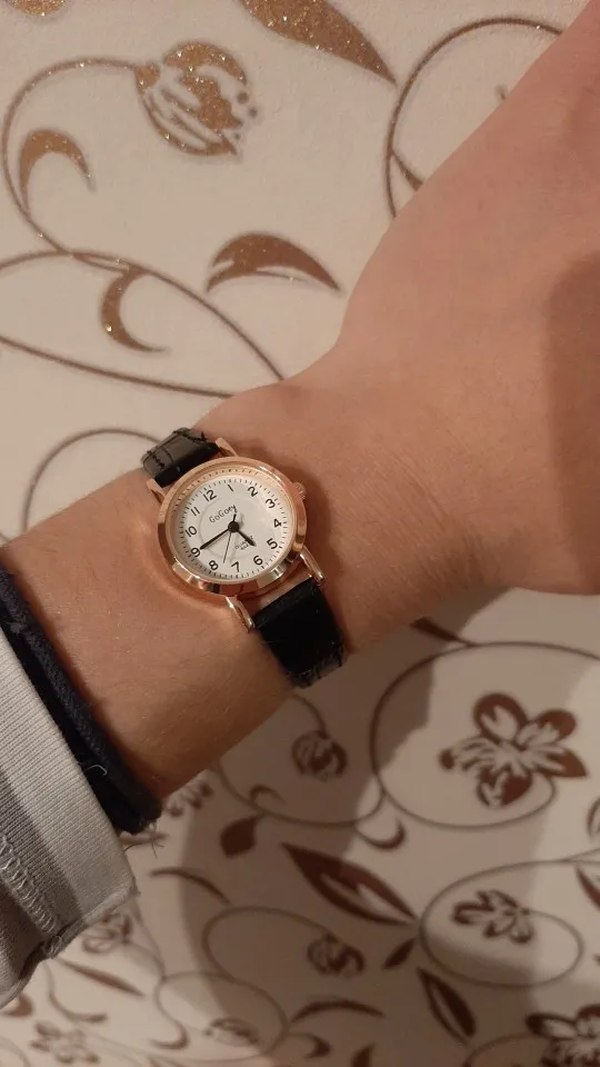 Золотая облицовка циферблата не совсем качественно покрашена под золото.(оранжевая) Доставка месяц до нн. На худую руку отлично!