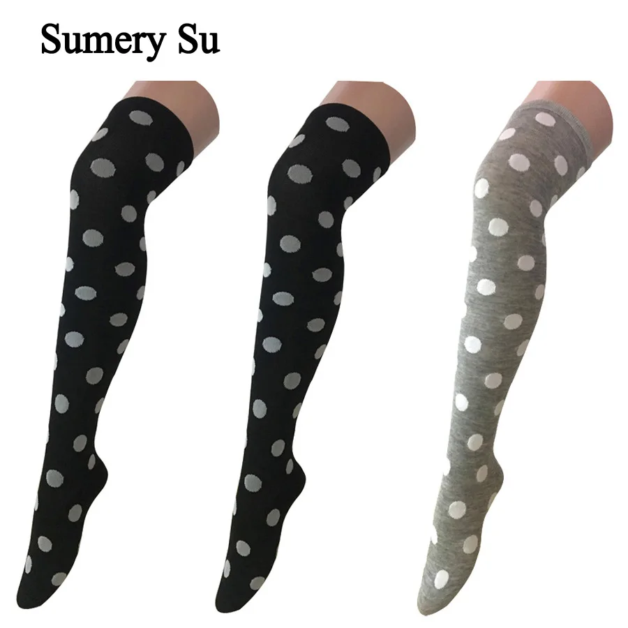 3 парыкоркорзина женские чулки из хлопка в горошек звездный узор пикантные милые до бедра выше колена облегающие Женские осенне-зимние чулки для девушек