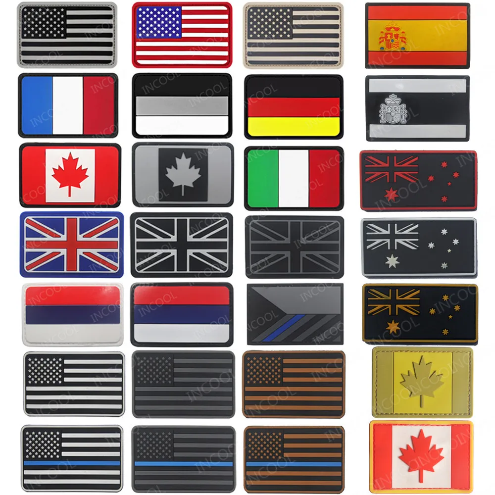 [Спецификация]:Великобритания Франция Германия Италия США Россия Чехия Канада США Испания ПВХ флаг Военный Патч тактические резиновые флаги значки