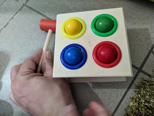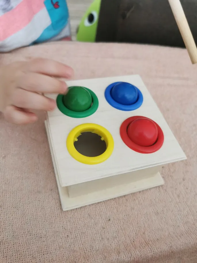 Мяч маленький жесткий wbija молоток я думаю, что такой маленький ребенок не может осуществить сделку. Продукт красиво сделан, например, для аукциона.