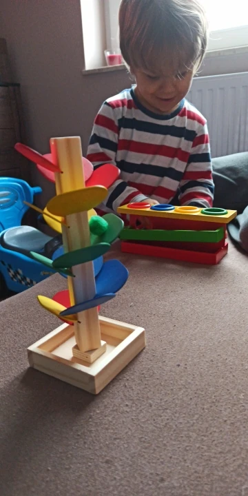 Сама по себе игрушка хорошая, но я думала что будет побольше. Игрушка предназначена для изучения малышами основных цветов. А это значит для совсем маленьких детей до 3-х лет. В 3 года ребенок уже должен с этими основными цветами познакомиться и запомнить. Шарики очень маленькие! Малыш может эти шарики проглотить! И они очень туго проходят через кольца, малышу нужно будет очень сильно по ним стучать, чтобы шарики прошел через кольцо. Производитель сэкономил на материале. Рекомендовать не могу, так как игрушка не соответствует требованиям по возрастным особенностям малышей! Так как эта игрушка не полностью выполняет свои функции, то и стоимость ее должна быть меньше. Соответственно лучше за эти деньги купить такую же, но побольше, и безопаснее для малыша! Если решитесь купить эту игрушку, то лучше давать ею играть строго под присмотром взрослых! Инструкции и предложения о том что игрушка может быть для малышей такого возраста естественно нет! Хочу просто предупредить родителей!