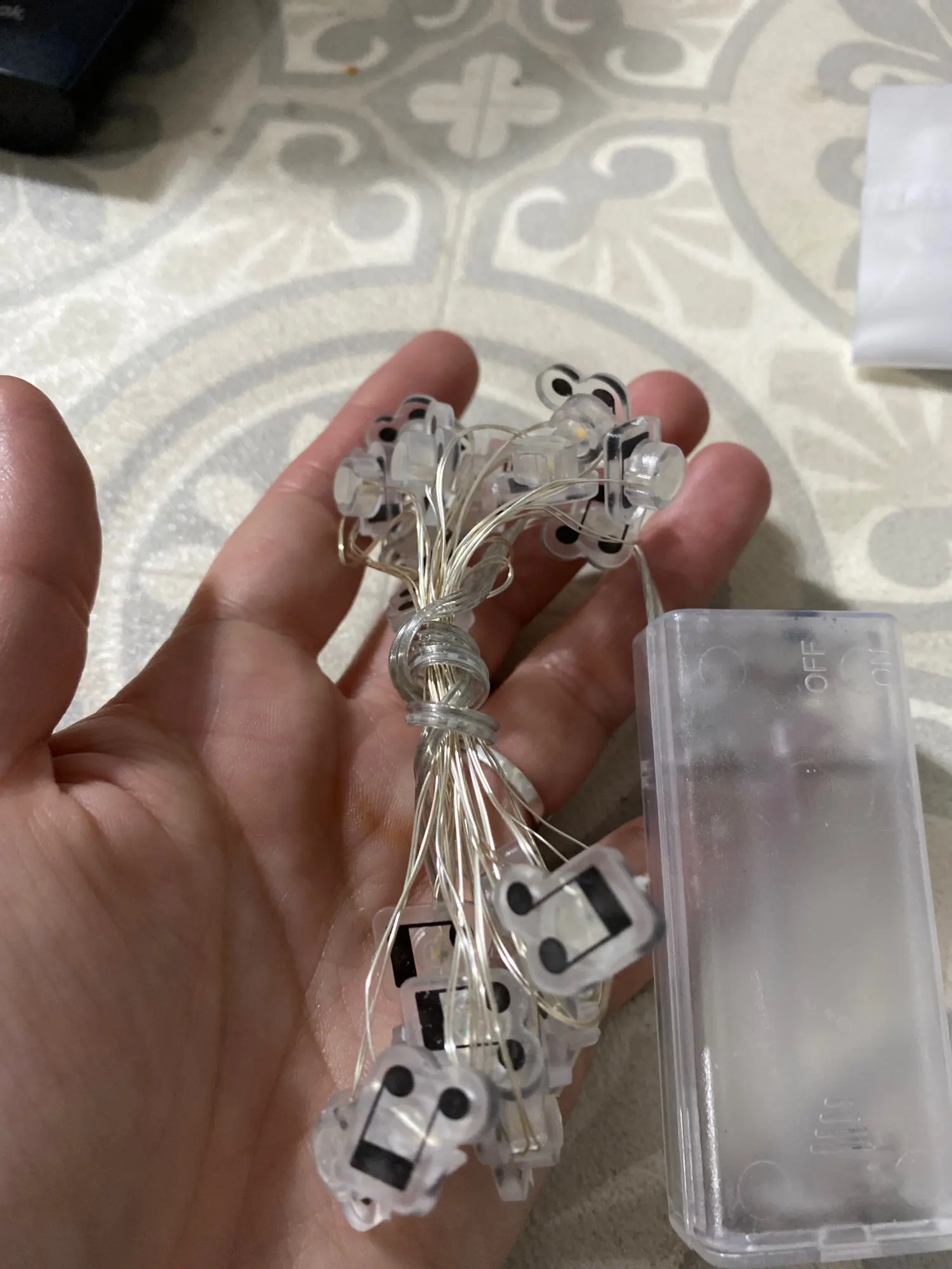 Гирлянда выглядит хлипкой, работает на батарейках