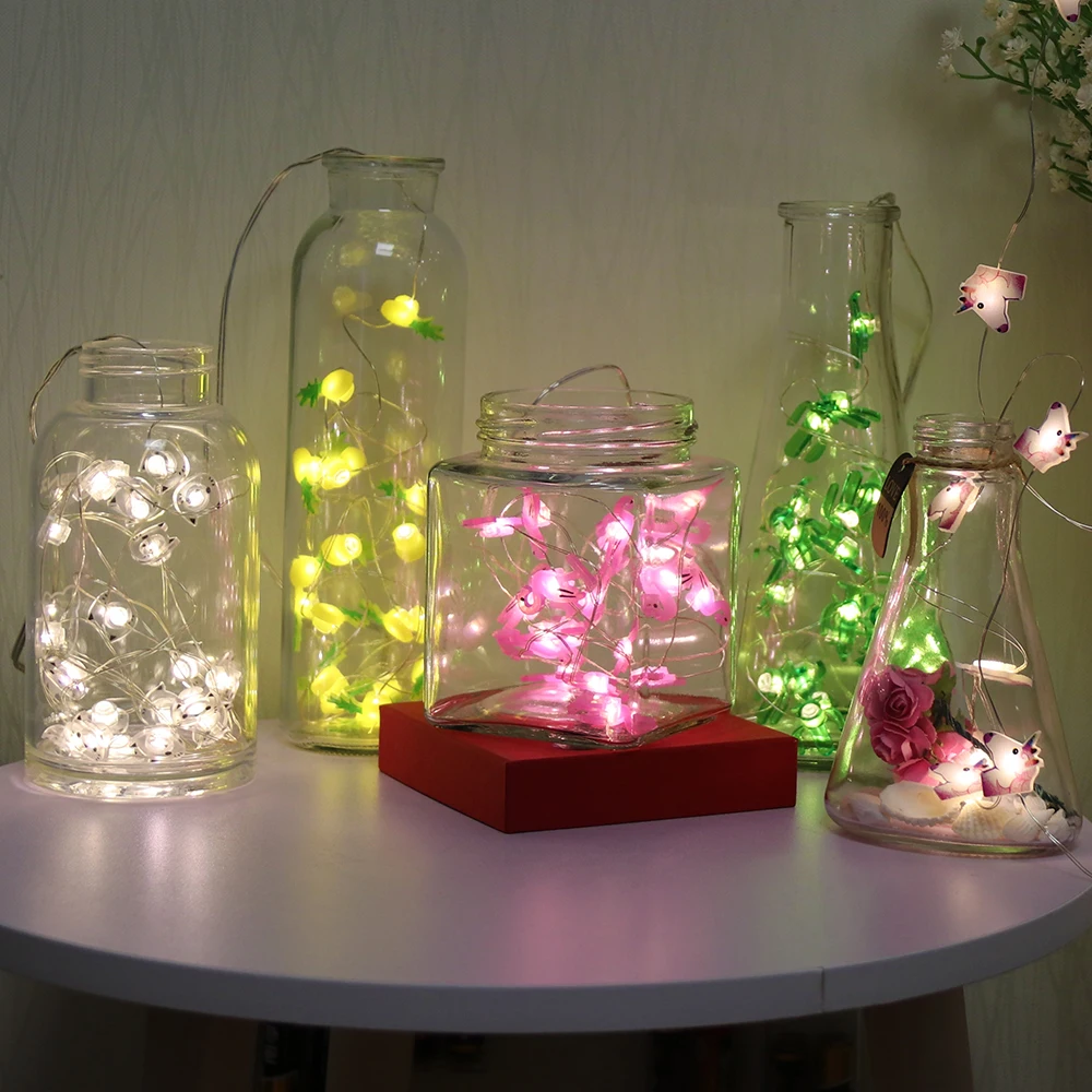 Сказочная гирлянда, музыкальный кактус, фламинго, 2,2 м, с аккумулятором, медный провод, праздничное освещение для комнаты, свадьбы, вечеринки, декоративная