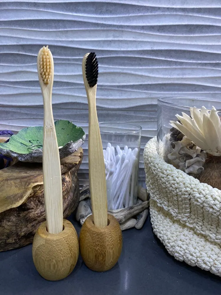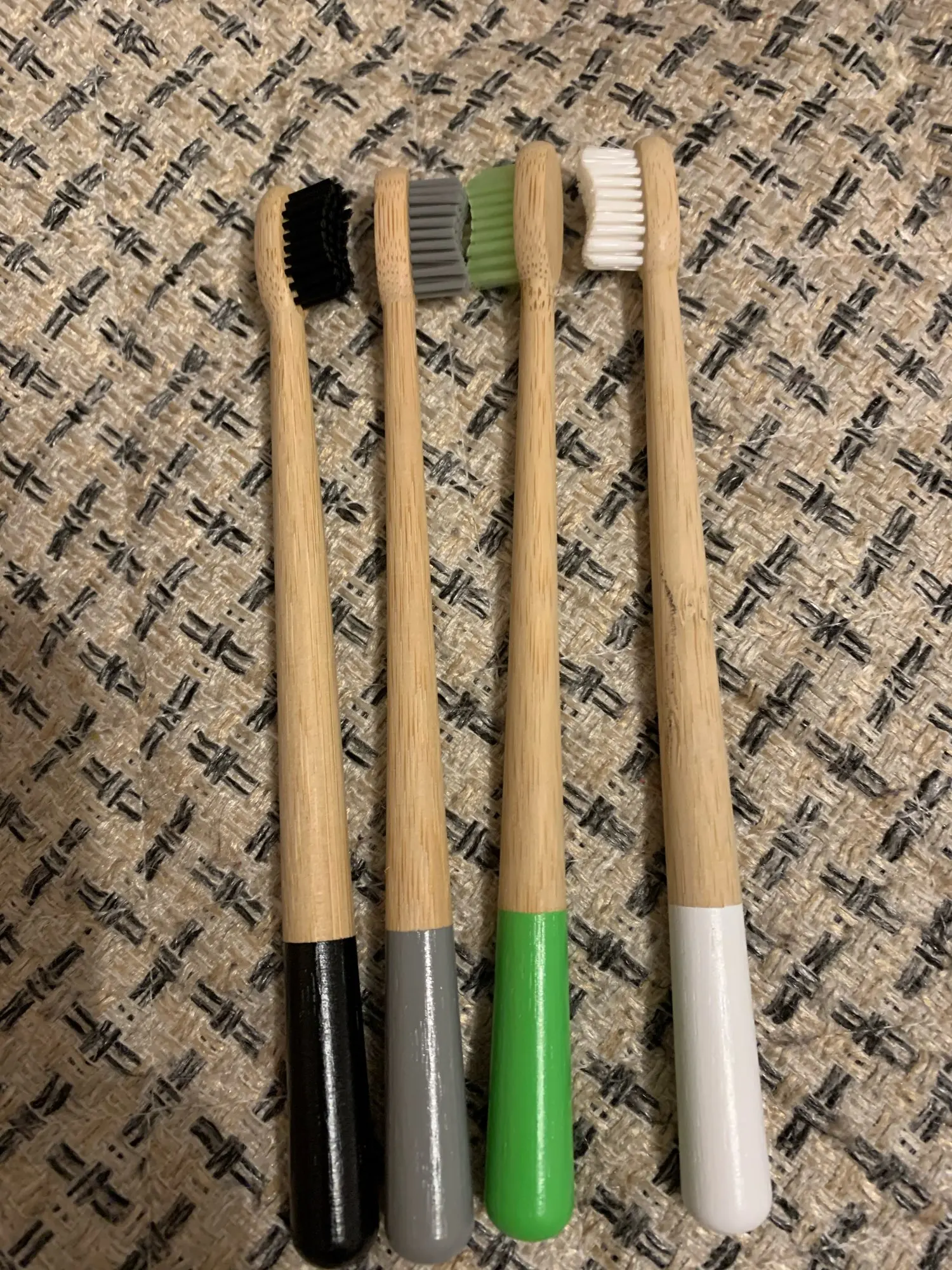 Красивые и удобные щётки. Головка маленькая, меньше, чем у обычных. Само дерево с какой-то пропиткой, не мокнет так сильно, как обычный бамбук