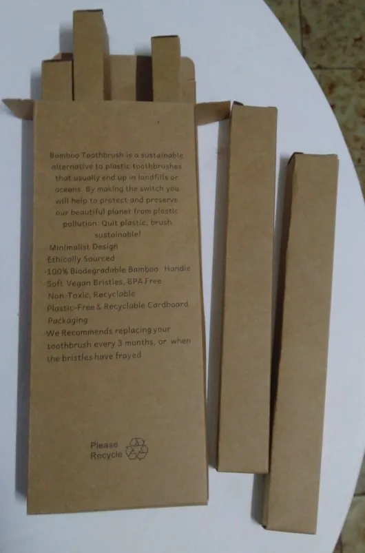 Точно так же, как на картинке, они очень легкие, гораздо больше, чем предполагаемая толщина, щетинки очень мягкие. Вся упаковка из картона, включая одну упаковку для каждой зубной щетки. На данный момент я не изменил свою фактическую зубную щетку, поэтому, когда я попробую эти бамбуковые, я добавлю больше отзывов.
