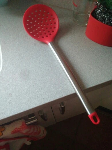 Кухонная утварь из нержавеющей стали и силикона, токарь, ложка для супа, ситечко, макарон, взбиватель яиц, лопатка, Красные щипцы для еды