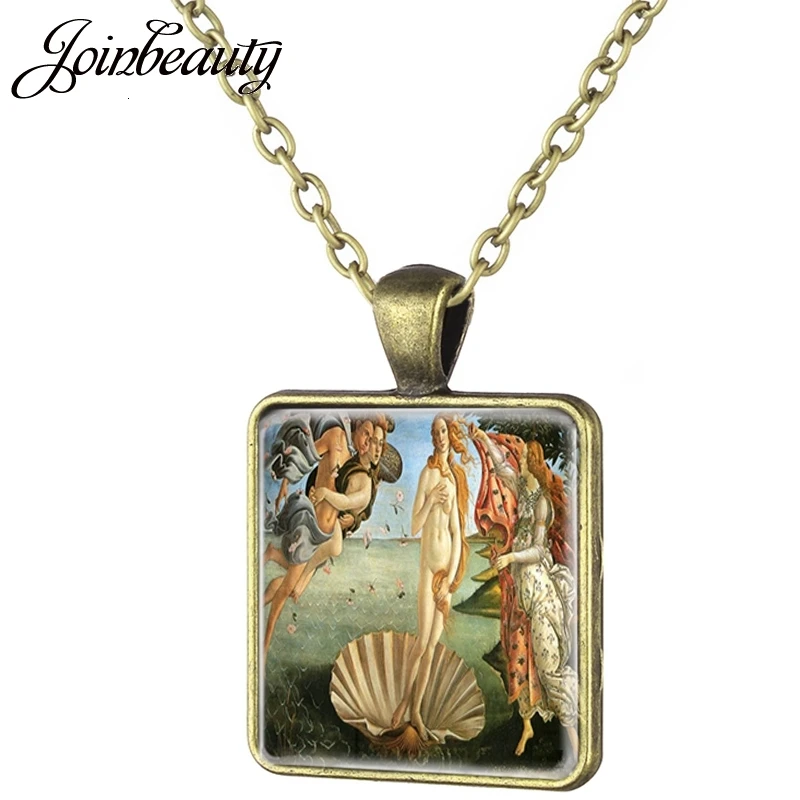 Классическое квадратное ожерелье JOINBEAUTY с изображением знаменитой живописи, стеклянный кулон Botticelli's Birth of Venus, ручная работа, чокер, ювелирные изделия WD41