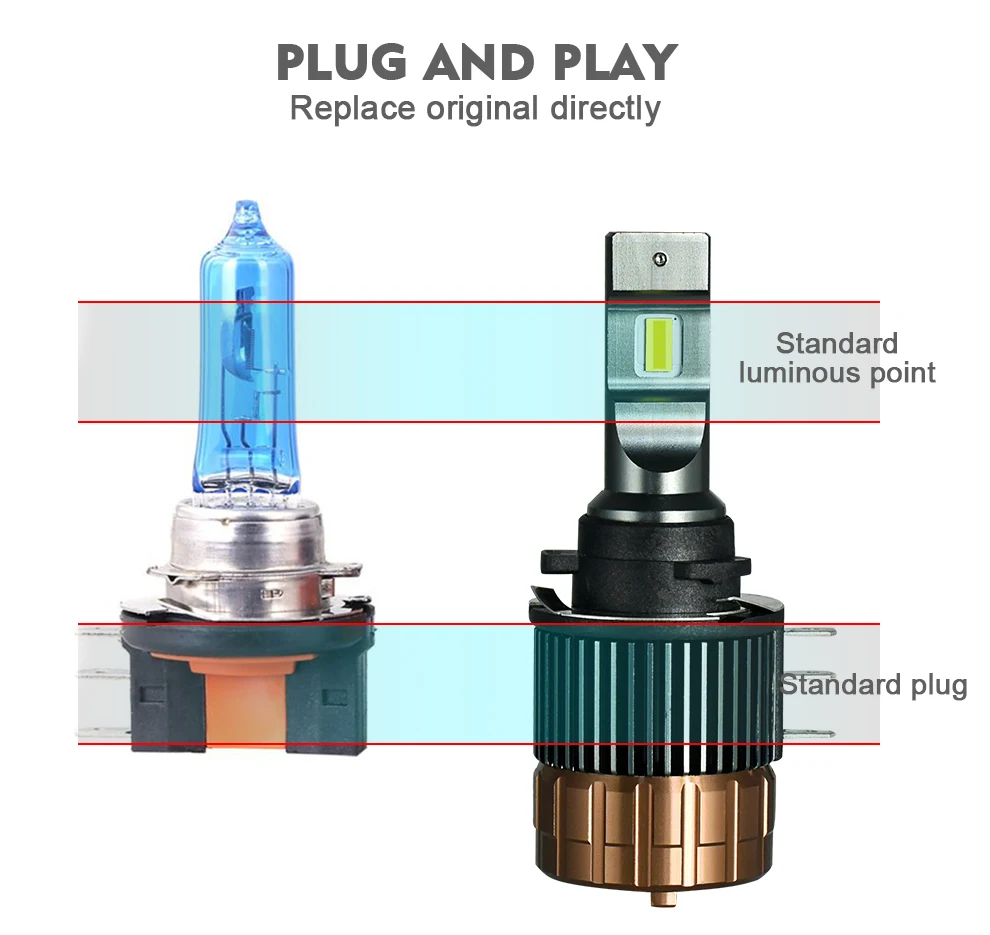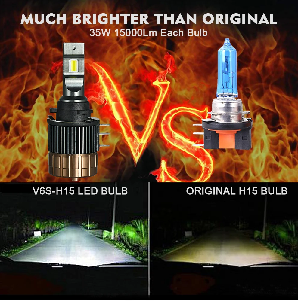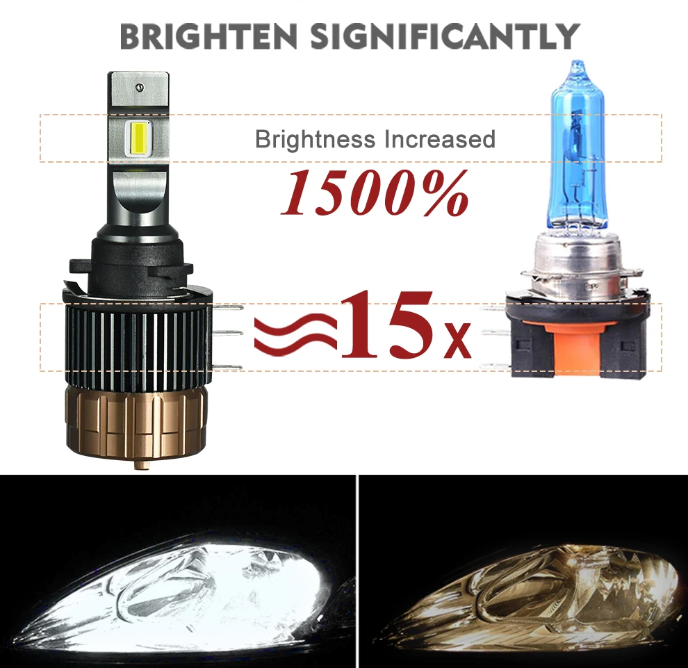 2 модернизированных светодиодных лампы фар H15.