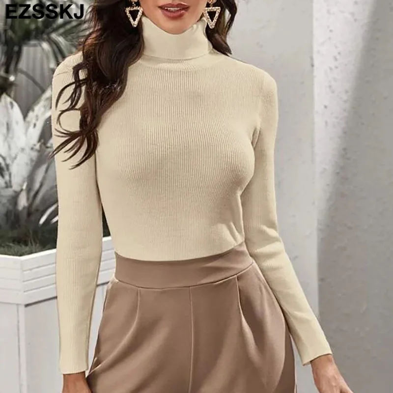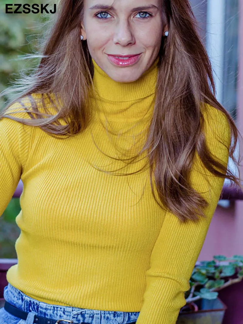 Свитер женский трикотажный с высоким воротом, Осень-зима
