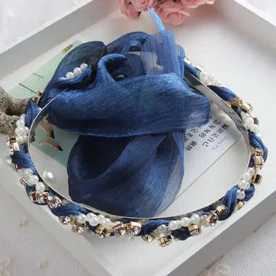 Обруч для волос женский Ruoshui, с жемчужинами и лентой