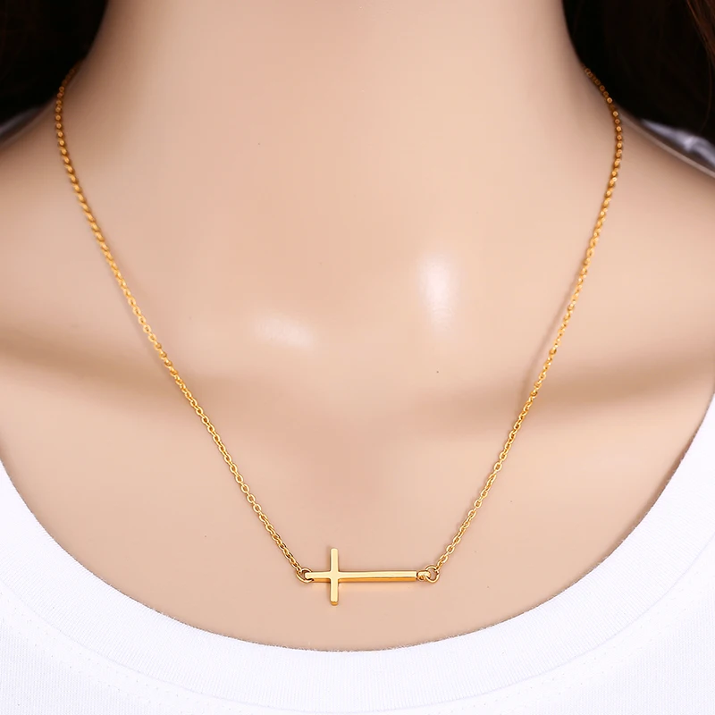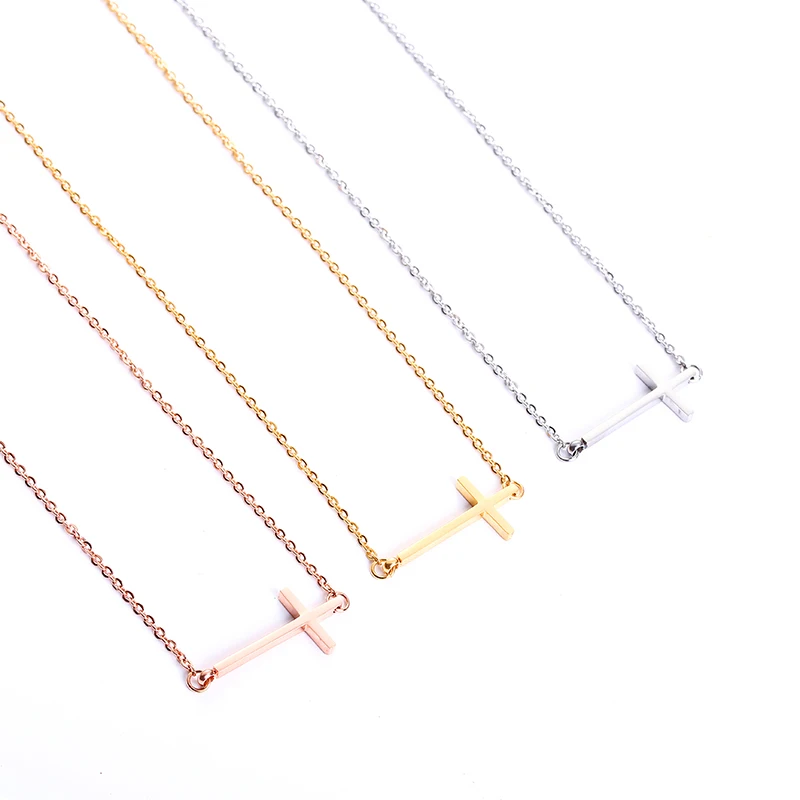НОВЫЙ Боком колье с подвеской в виде креста нержавеющей стали колье для женщин и мужчин, золоторозовое золото Цвет цепи ожерелье, ювелирное изделие, подарок