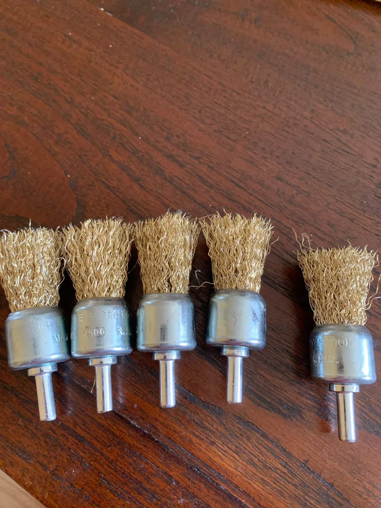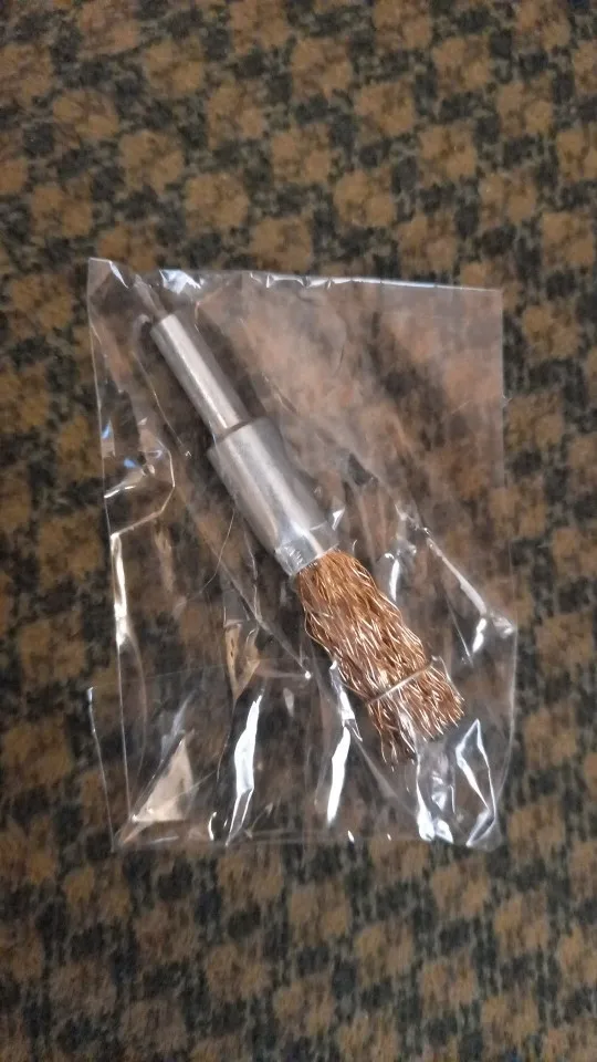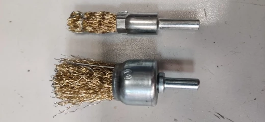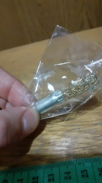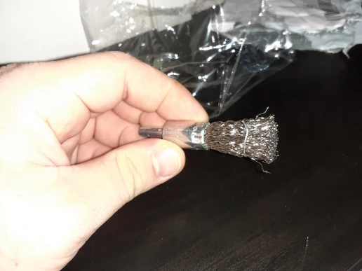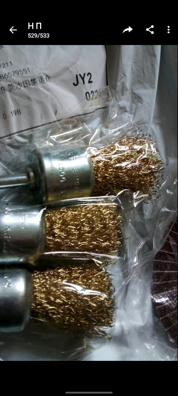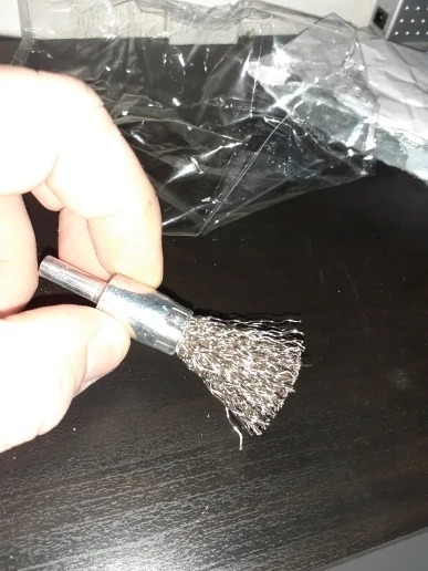 доставка очень долгая, пришло за 3 дня до окончания срока доставки. сами щетки довольно мягкие, поэтому усилие при очистке надо прилагать аккуратно иначе сильно расползается в стороны. хвостовик порадовал, ровно 6мм, в цангу встает четко (в магазине постоянно толще попадаются и можно раздраконить цангу). разницы в жесткости между крашеными под латунь и стального цвета не заметил. для моих целей подходит на все 100%. как быстро проволочки выпадут покажет эксплуатация, тогда и дополню отзыв