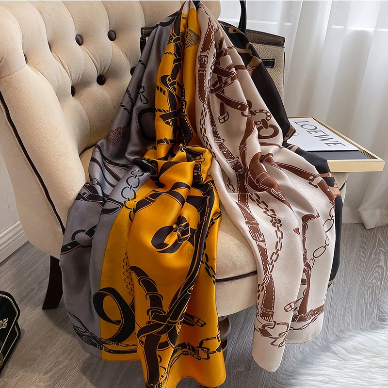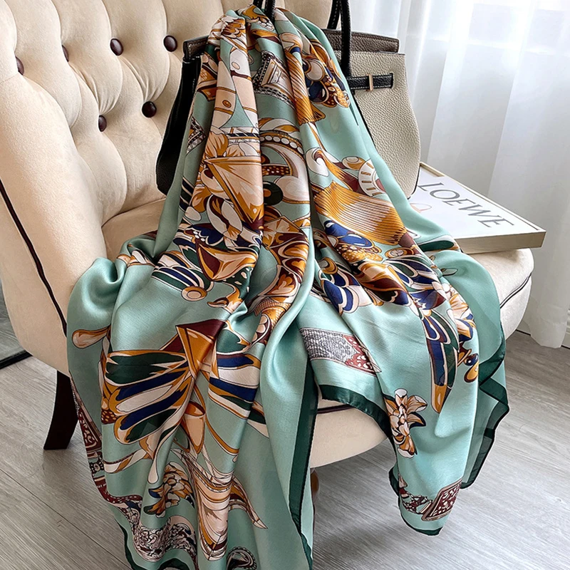 X 90 см роскошный брендовый летний женский шарф Модная шелковая Женская шаль платок Пляжная накидка бандана шифоновая парео для женщин