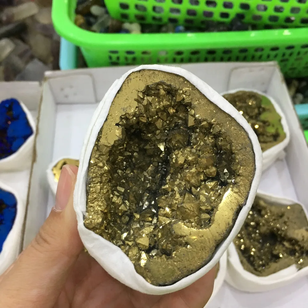 Природный Агат фрагмент жеоды Drusy Druse кварцевый Гальванизированный кластер кристаллические точки