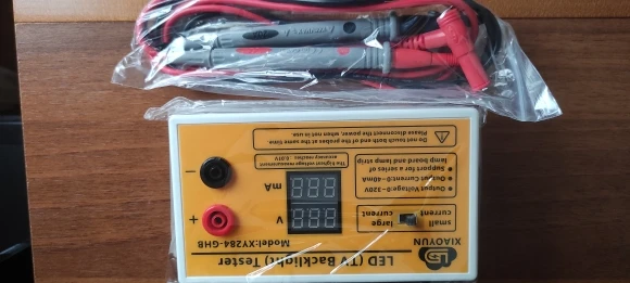 Доставка 17 дней с полным отслеживанием. Заказ упакован в коробку, с содержимым обёрнутым пупыркой. В общем доставлено всё без повреждений, даже коробка не помята. О товаре: комплектность как в описании, прибор, щупы, инструкция на английском (щупы с острыми, тонкими концами, провод достаточно мягкий). Опробовал, всё функционирует, о точности показаний на приборе судить не буду, так как с мультиметром не сравнивал из-за отсутствия времени. В целом прибор понравился компактный, лёгкий, измеряет как отдельные светодиоды или группы из нескольких последовательных светодиодов, так и полные сборки (чего не получилось сделать с лабораторным блоком питания). Монтаж элементов на плате выполнен добротно (на двух микросхемах затёрта маркировка). Товар качественный. Продавцу наилучшие рекомендации.