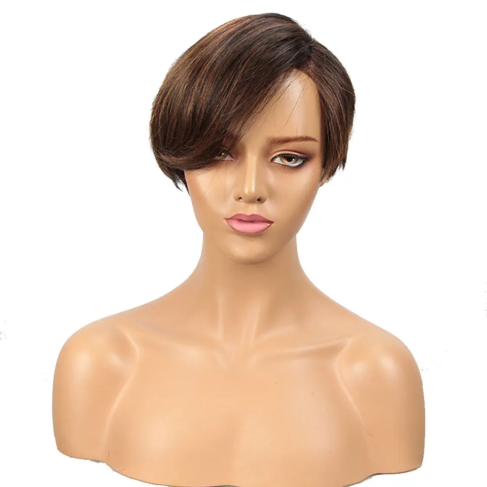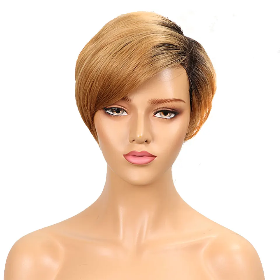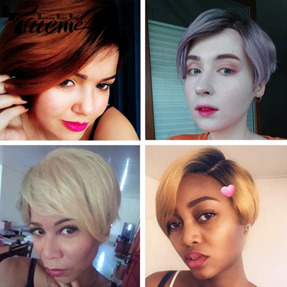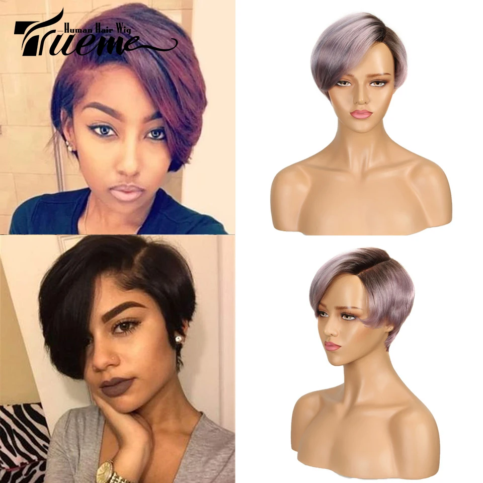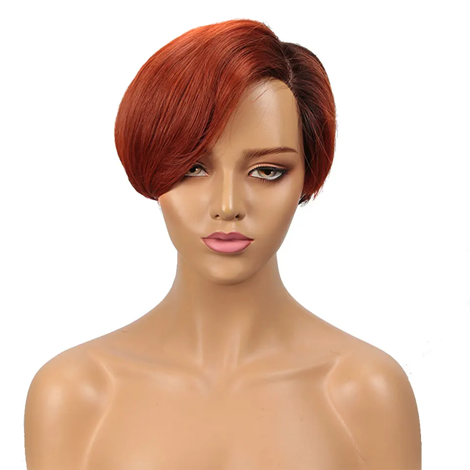 Парик Женский на сетке, Короткие парики из человеческих волос Блонд, пурпурно-красный, с эффектом деграде 613
