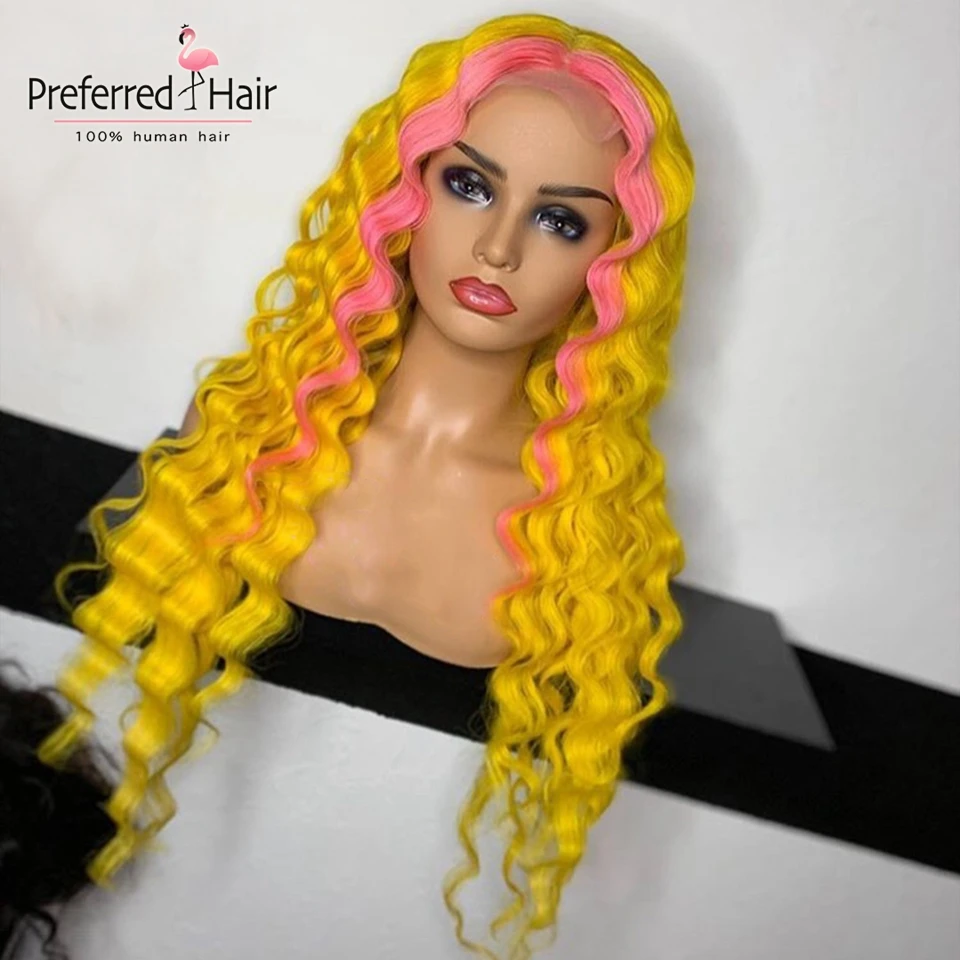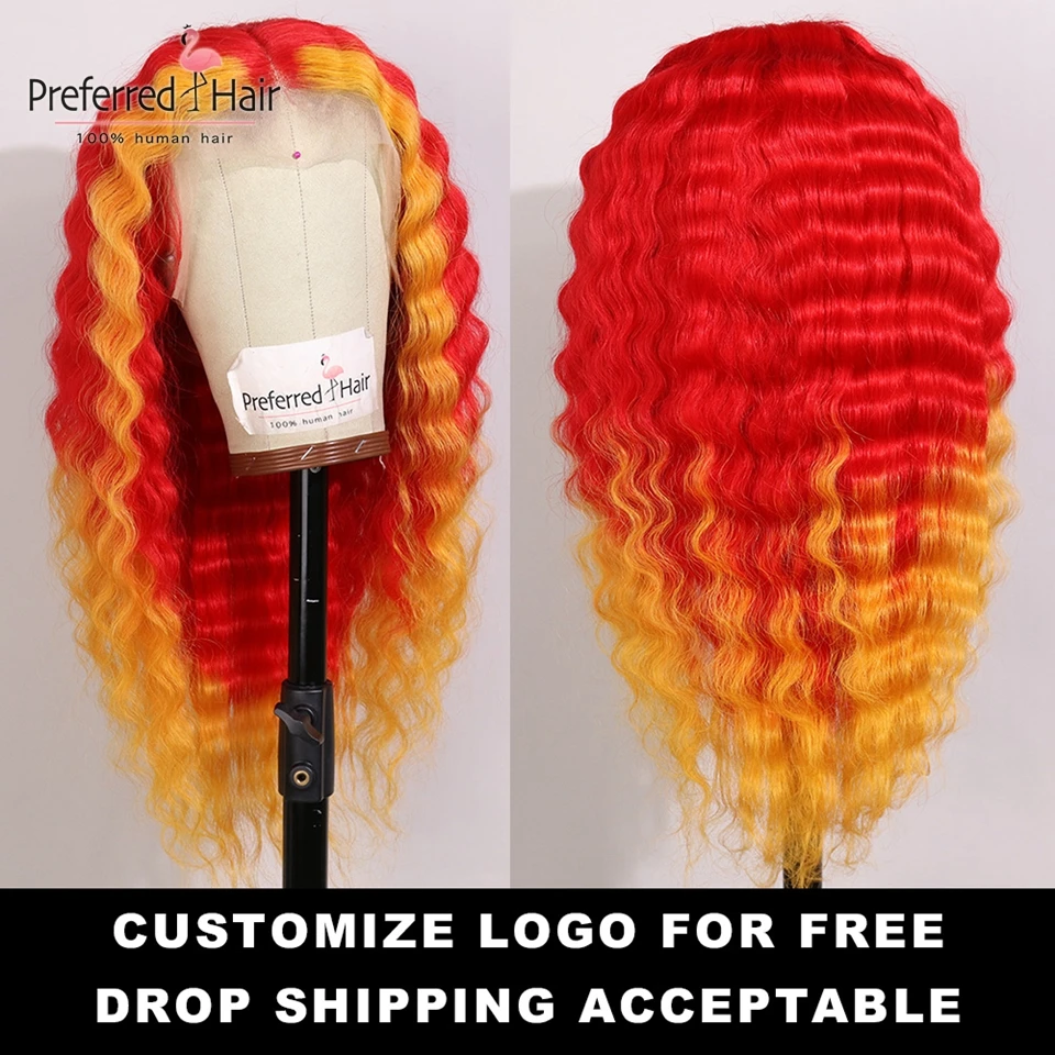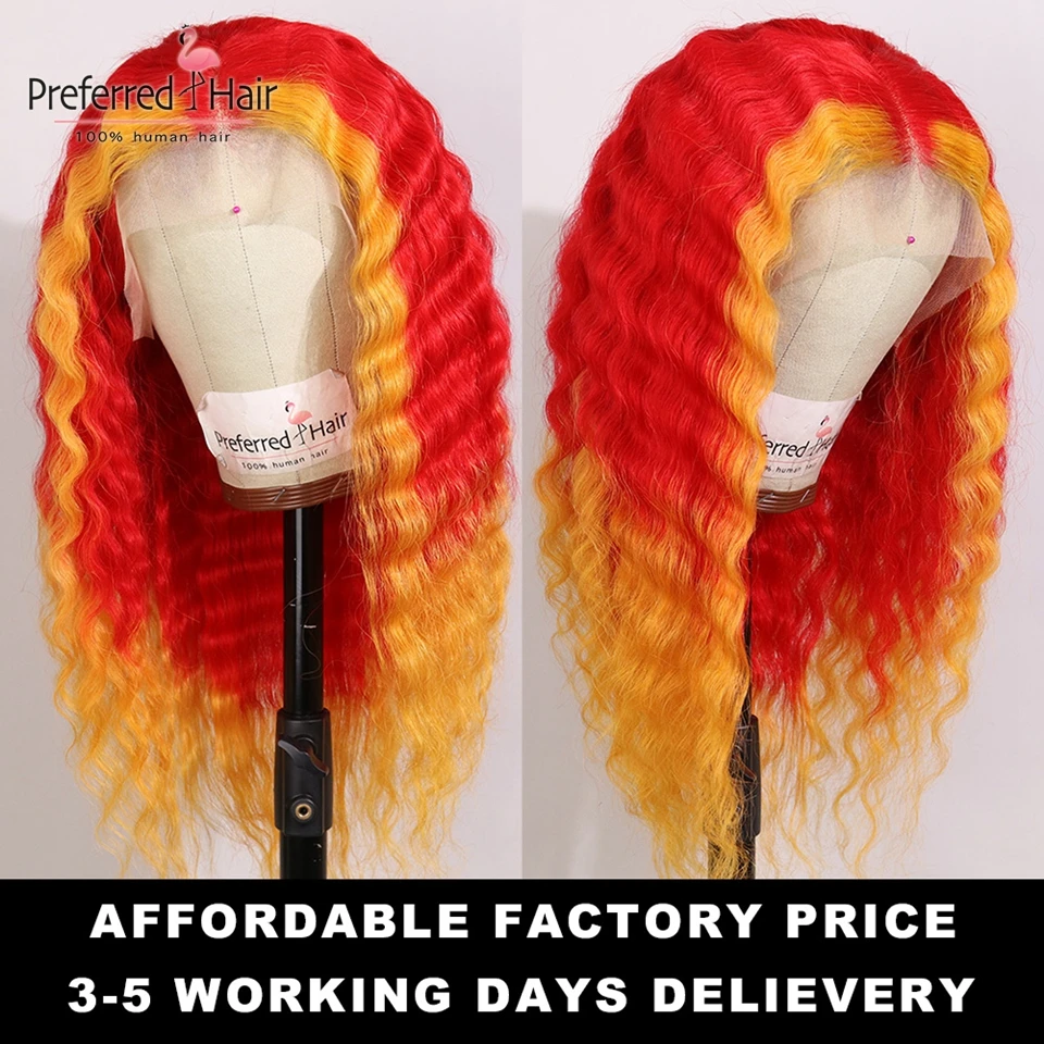 Предпочтительный парик с глубокой волной на шнуровке, бразильский парик без повреждений, красный на желтый, розовый, хайлайтер, парик из человеческих волос, парики с эффектом омбре для женщин