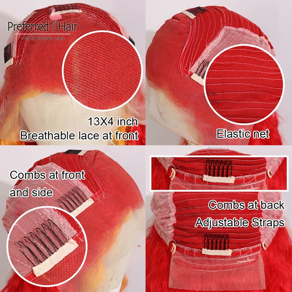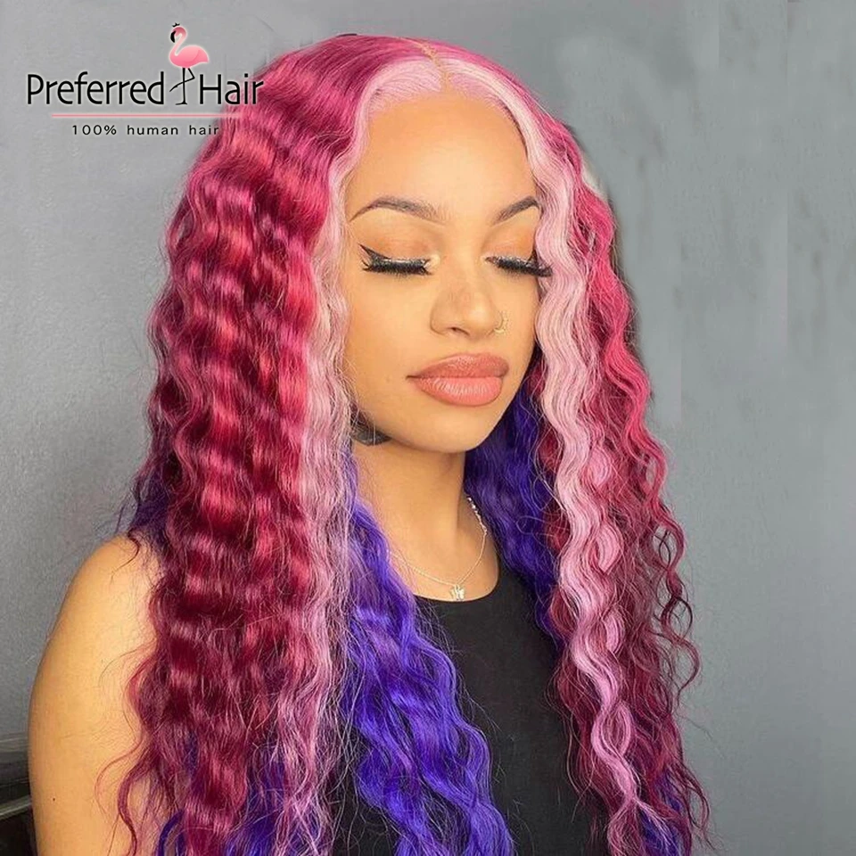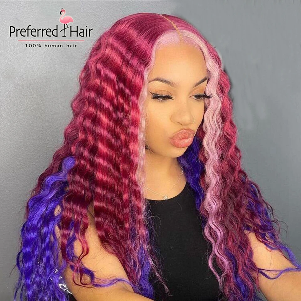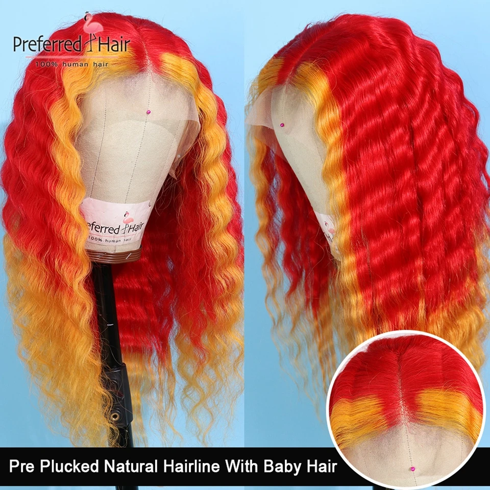 Предпочтительный парик с глубокой волной на шнуровке, бразильский парик без повреждений, красный на желтый, розовый, хайлайтер, парик из человеческих волос, парики с эффектом омбре для женщин
