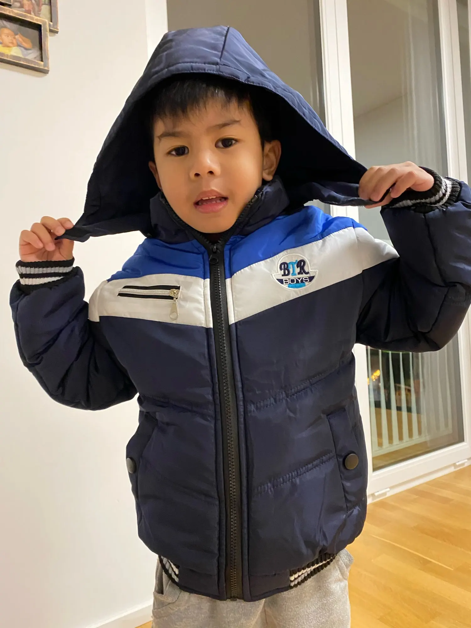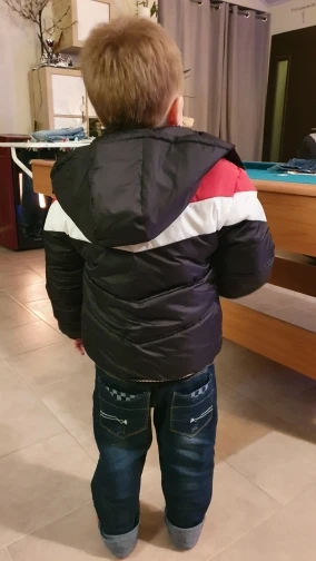Куртка очень красивая, как на фото, и размер 5 для ребенка от 4 до 5 лет. Мальчику понравилось, а также тепло. Идеально. Очень рад