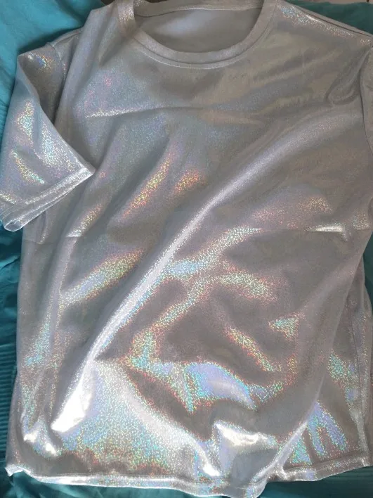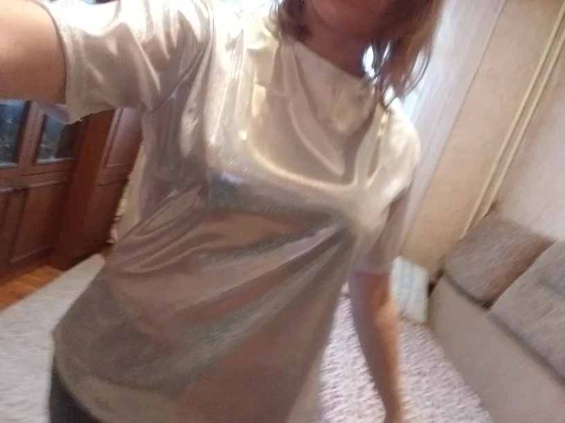 футболочка очень красивая,хорошо сшита,переливается.Доставка быстрая.