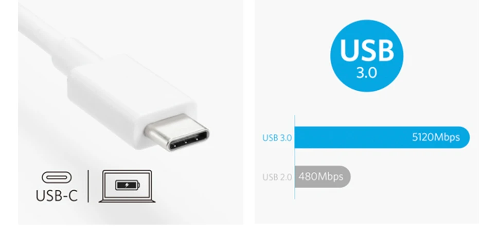 Совместим как с устройствами USB-C, так и с USB 3,0 и кабелями для оптимального удобства.