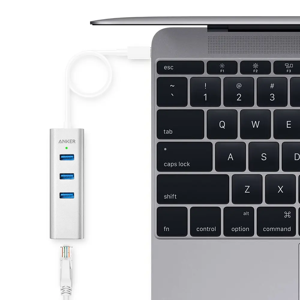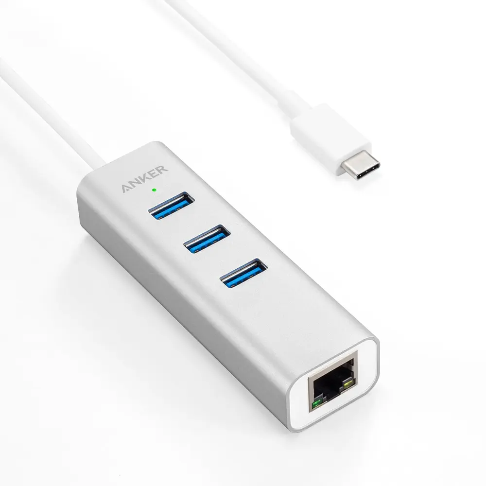 Алюминиевый Портативный концентратор с USB-C на 3 порта USB 3,0 с адаптером Ethernet