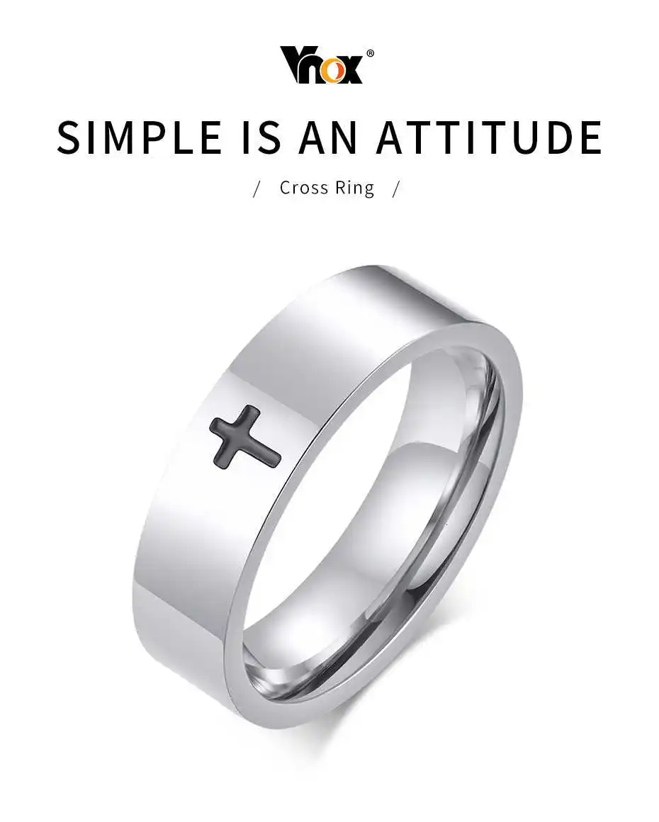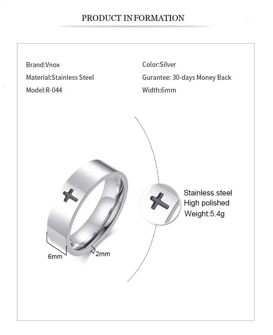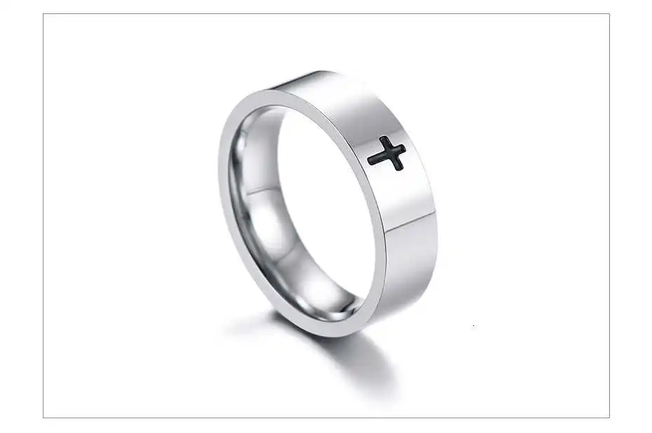 Кольцо с крестом из нержавеющей стали, 6 мм