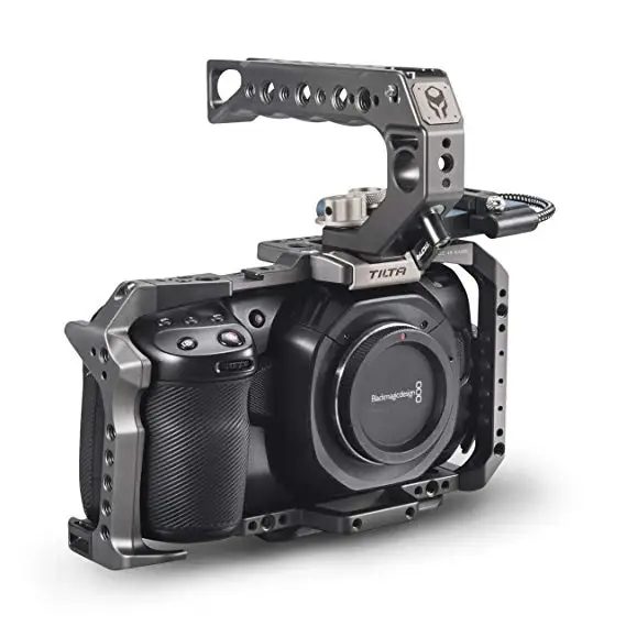Поставьте камеру с помощью основного набора клетки для камеры Tilta для карманного кинотеатра Blackmagic 4K в сером цвете Tilta.