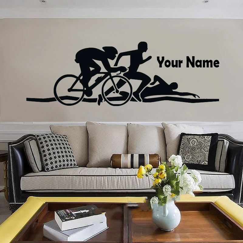 Наклейки на стену для триатлона, для плавания, бега, велоспорта