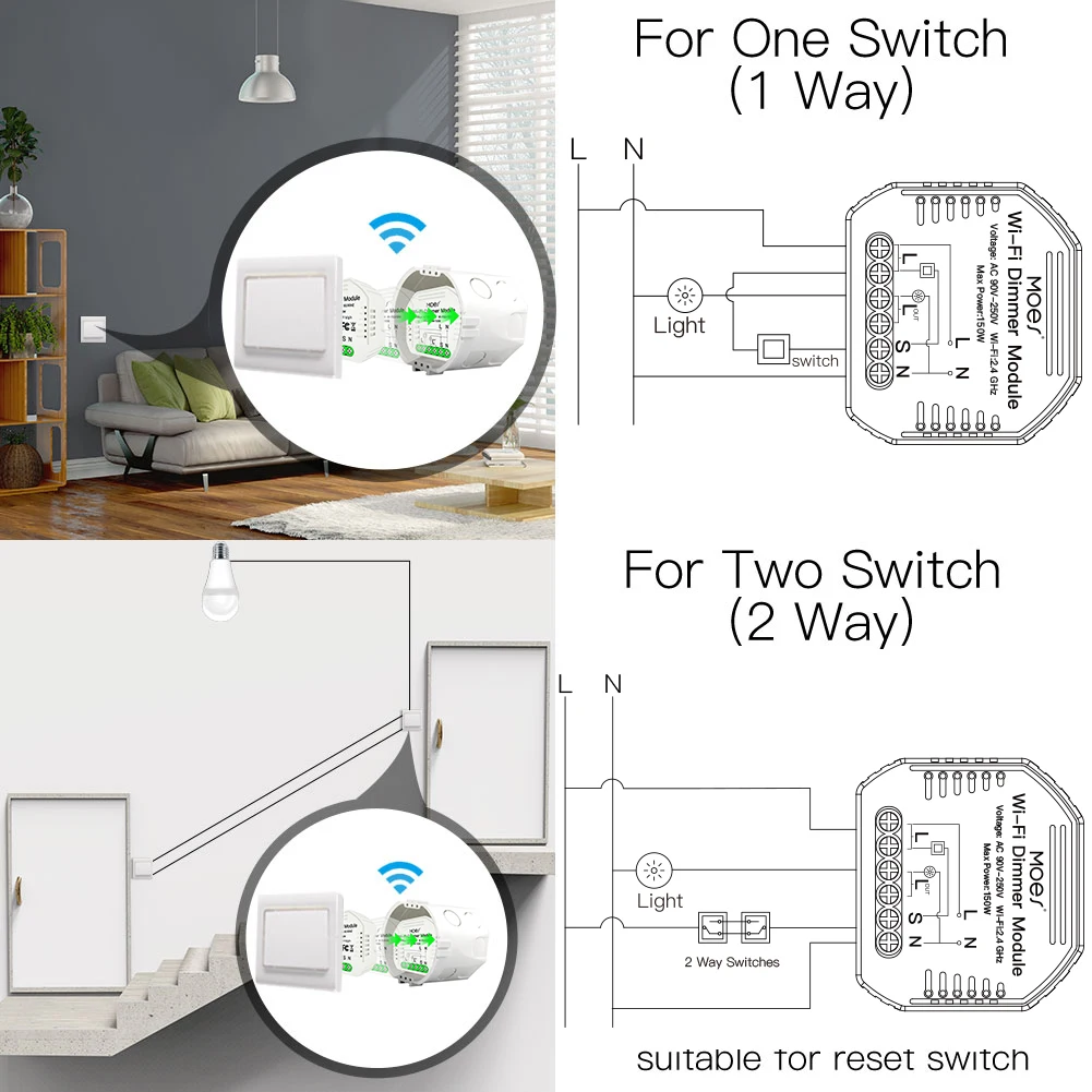 , Также можете сделать ваш существующий 2-позиционный переключатель умным, просто установите 1 Умный переключатель диммера «сделай сам», подходит для коробки переключателей ЕС/Великобритании, пожалуйста, подтвердите размер перед заказом.