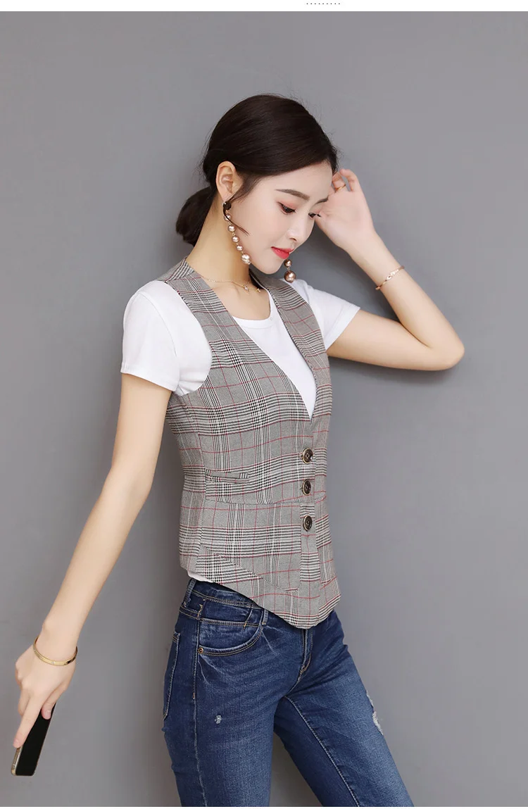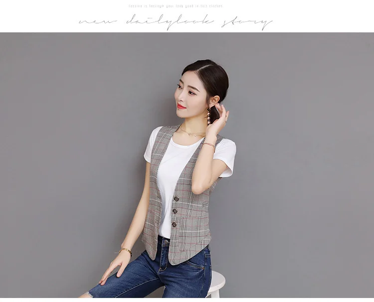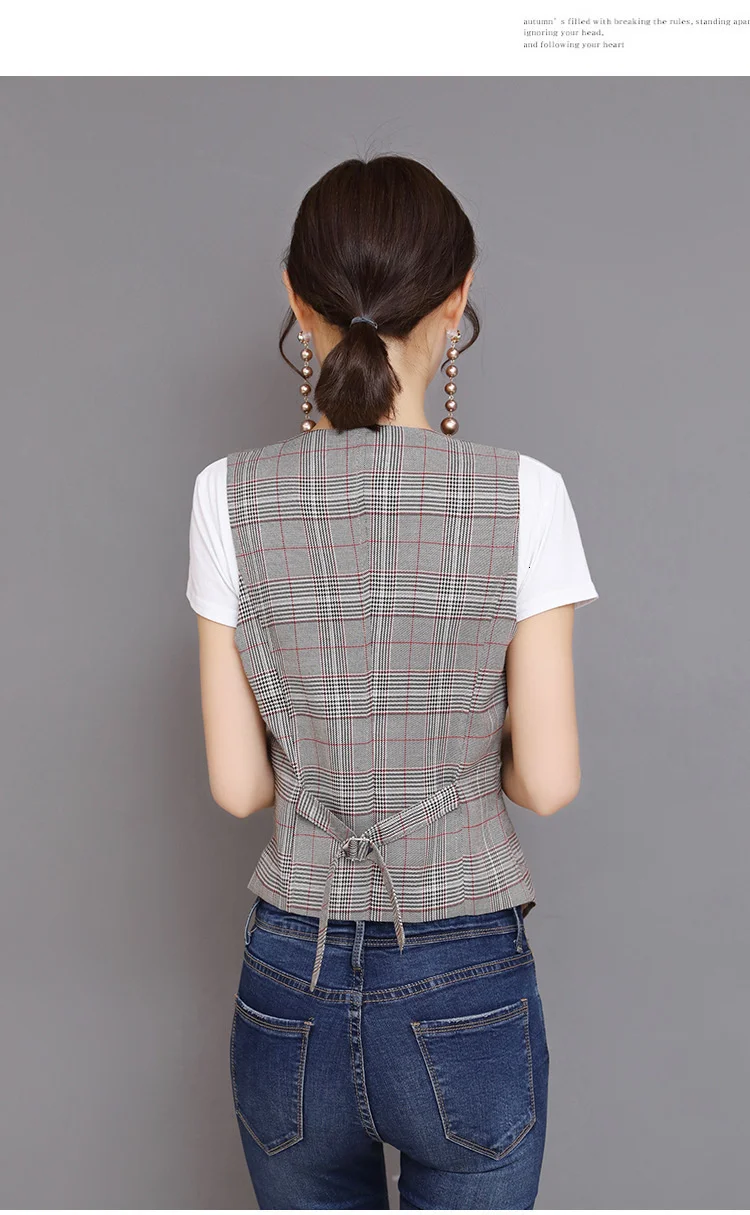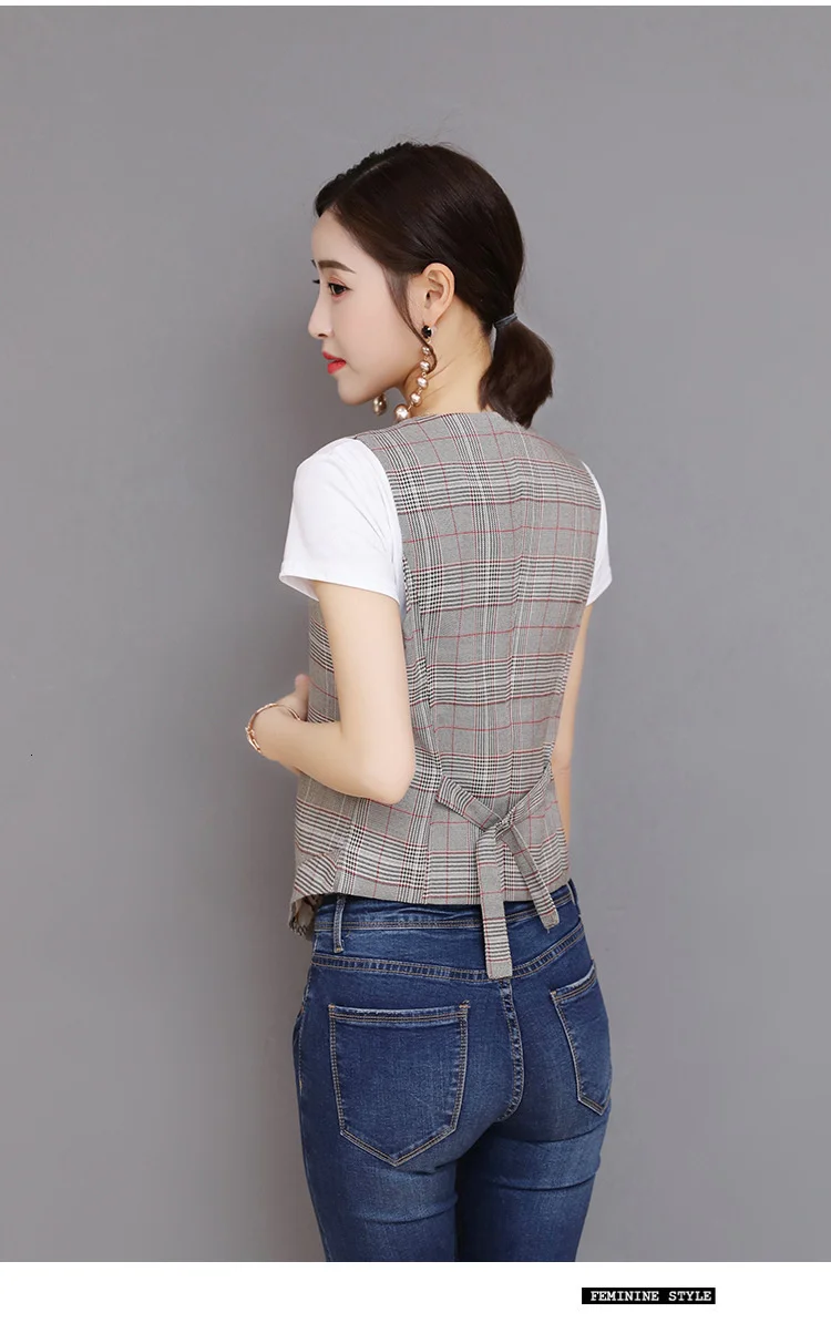 Жилет женский в клетку #0702, короткий тонкий блейзер без рукавов, повседневный элегантный, лето размера плюс, 4XL