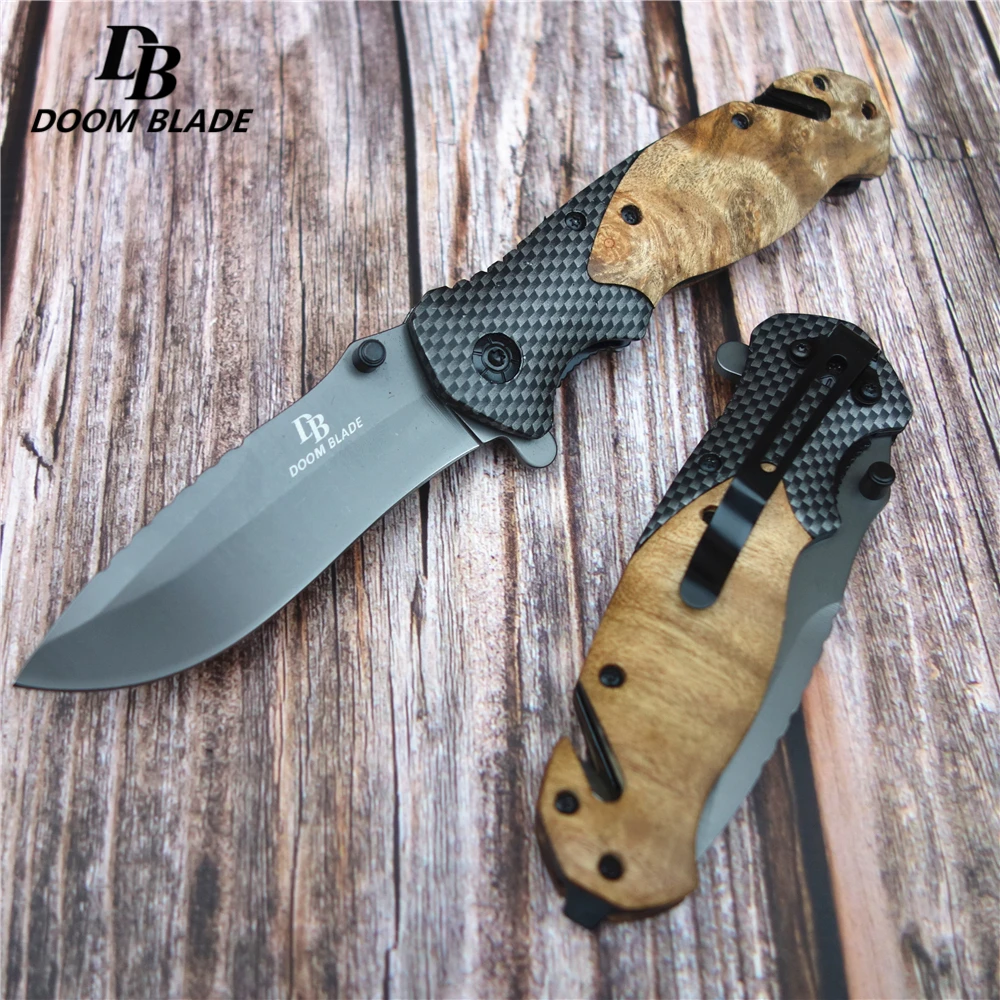 7,9 "55-56HRC ножи деревянная стальная ручка складной охотничий нож Быстрый Открытый походный карманный нож тактический нож s открытый инструмент для выживания