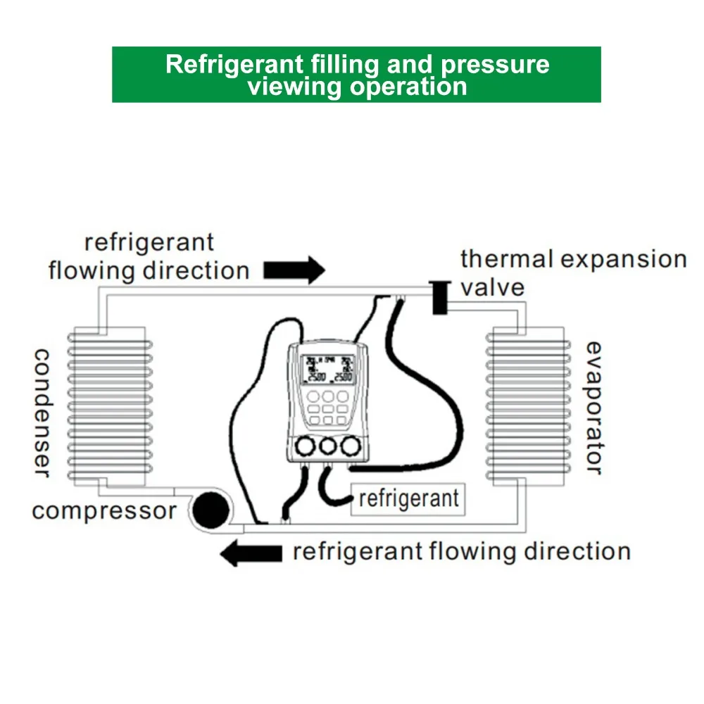 Интеллектуальный электронный хладагент группа инструмент является вспомогательным инструментом для установки,Тестирование и техническое обслуживание холодильного оборудования, такого как кондиционеры, холодильники и холодильные камеры.Прибор имеет двойной тест давления, двойной температурный тест, цифровое считывание, мульти-блок переключения,Многофункциональная функция и встроенная база данных хладагента.Инструмент использует Высокопрочный инженерный пластик и гибкий нескользящий Силиконовый дизайн,Вся машина прочная и удобная для удержания.Встроенный 32-битная цифровая обработка блок и высокой точности система сбора и обработки данных блок, которые ставят высокие данные и стабильности во всем мире.Большой размер жидкокристаллического дисплея, ЖК-дисплей задняя светильник поддержки, отображение данных четкий и удобный для чтения, удобный светильник операции.Долговечный клапан, 1/4 дюймовый стандартный дизайн интерфейса для обеспечения долговечности и универсальности прибора.Прибор может измерять двойное давление одновременно, а также двойное измерение температуры,С автоматическим мульти-единичным преобразованием давления, автоматическое преобразование температуры Цельсия/Фаренгейта,Для облегчения различных потребностей. Встроенный 89 видов хладагента давления-испарения температуры базы данных,Также рассчитать супертепло охлаждения, чтобы облегчить прямое считывание данных рабочего процесса.Также он проверяет процент измерения вакуума; Измерение утечки давления, запись Скорости времени утечки.Заслуживает того, чтобы этот многофункциональный, точный и просто управляемый цифровой коллектор позволял вам делать работу правильно.