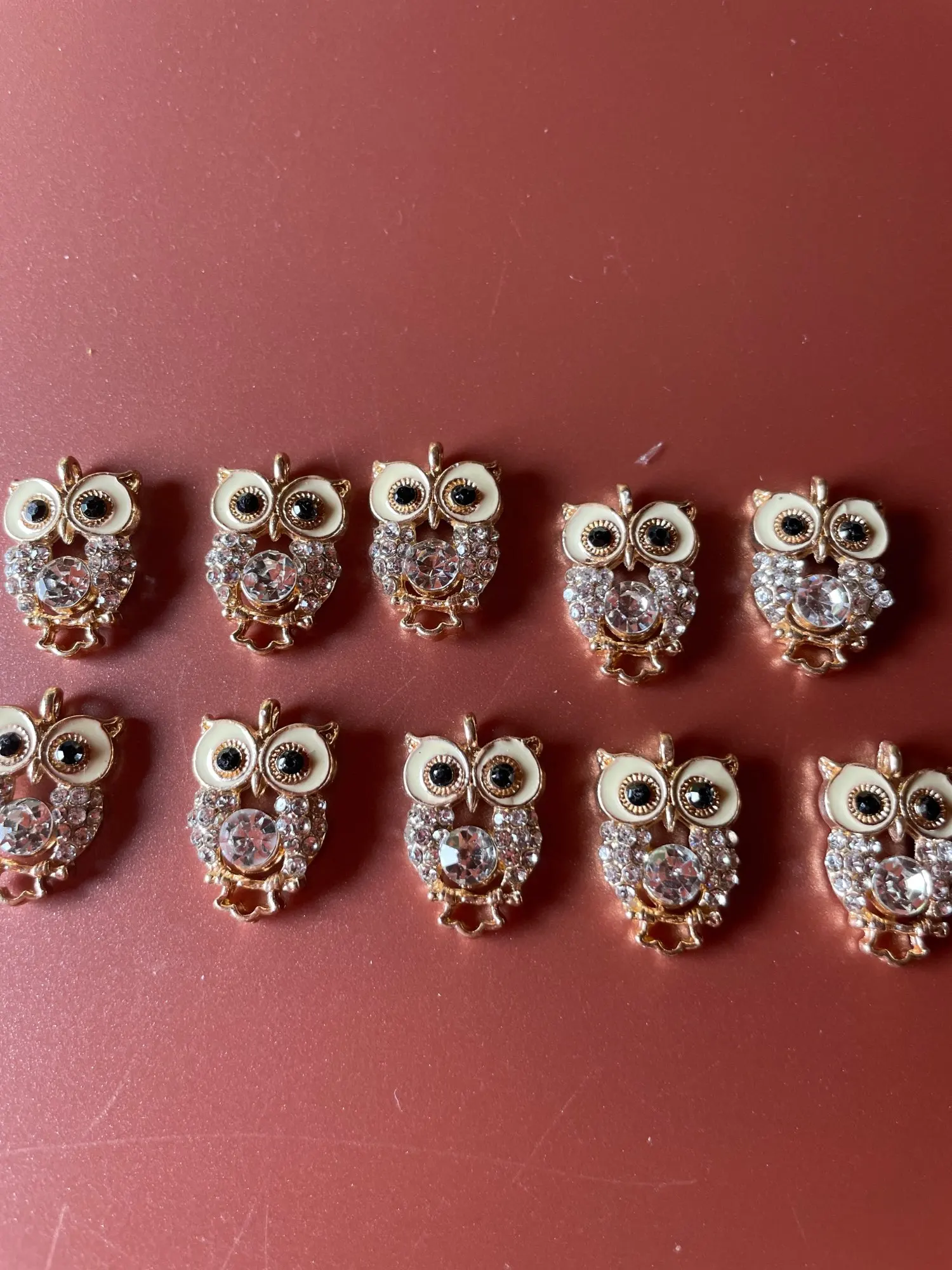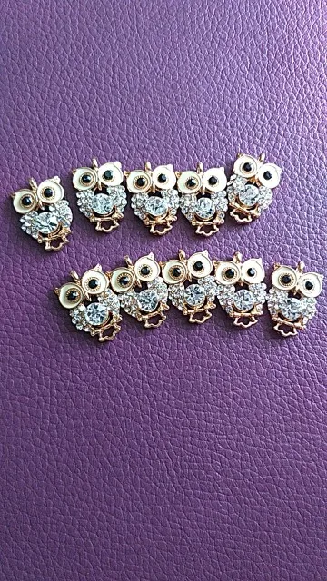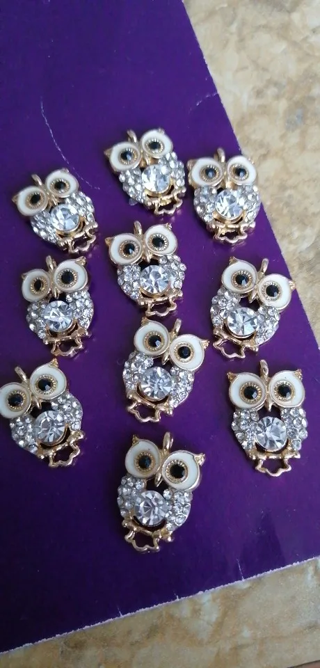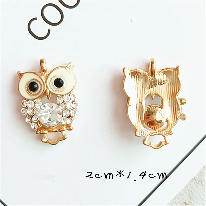Подвесные пуговицы в виде совы из сплава с золотыми стразами, 10 шт.лот, ювелирные украшения, серьги, Чокеры для волос, аксессуары для рукоделия