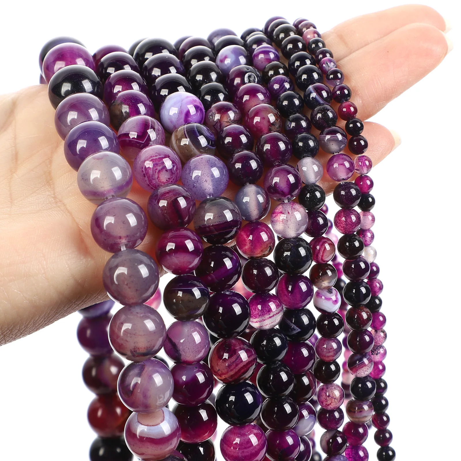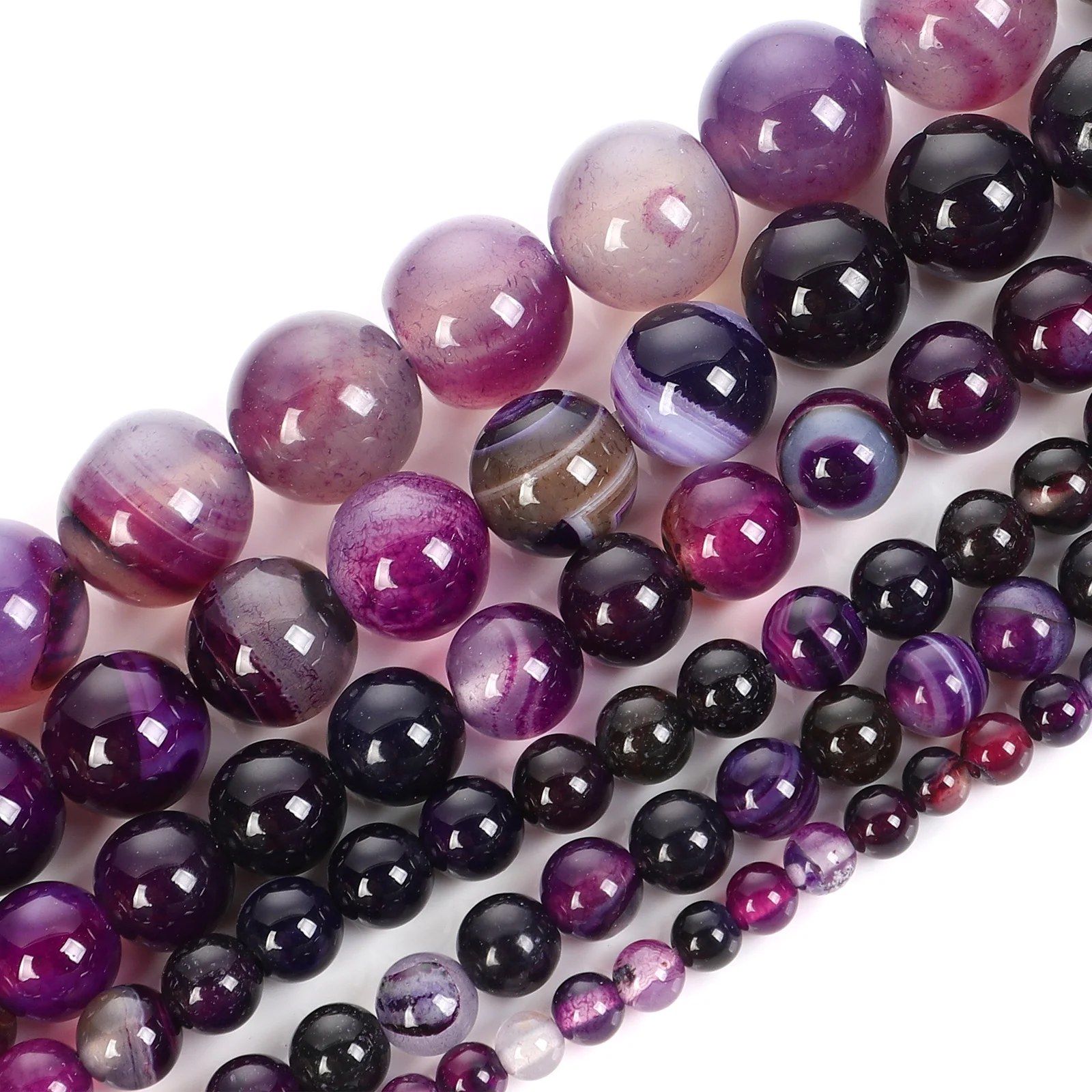 Бусины из натурального камня 15 дюймов, гладкие фиолетовые полосатые Агаты, круглые бусины россыпью для изготовления ювелирных изделий, ожерелий, браслетов, 4-12 мм