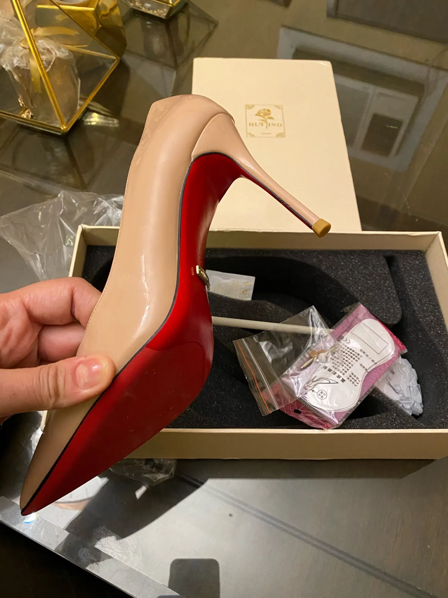 Туфли с красной подошвой пикантные женские туфли-лодочки туфли из натуральной кожи на высоком каблуке свадебные туфли на шпильке с острым носком для вечеринок
