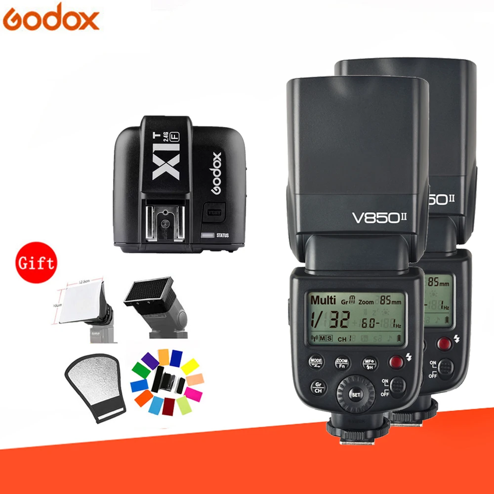 Godox 2 * V850II 18000s HSS 2,4G GN60 Встроенная беспроводная система X литиевая батарея Speedlite вспышка с X1T-триггером для Nikon Sony