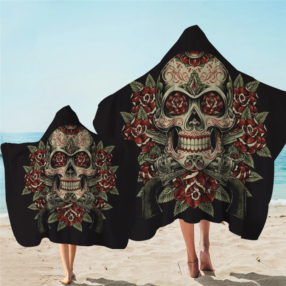 Крутой Череп с цветами, винтажный и классический, два цвета на ваш выбор. Это не только банное полотенце, но и можно использовать как пляж, полотенце для бассейна, халат и так далее. Отлично подходит для серферов, пловцов и для всей семьи на каникулах. Дизайн с капюшоном поможет высушить волосы и защитит ветер в холодные дни.