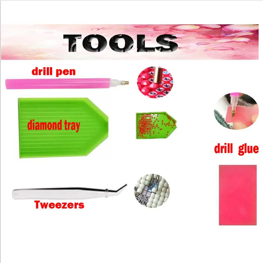 Посылка включает: Полностью сверлильный алмаз, напечатанная ткань, инструменты
